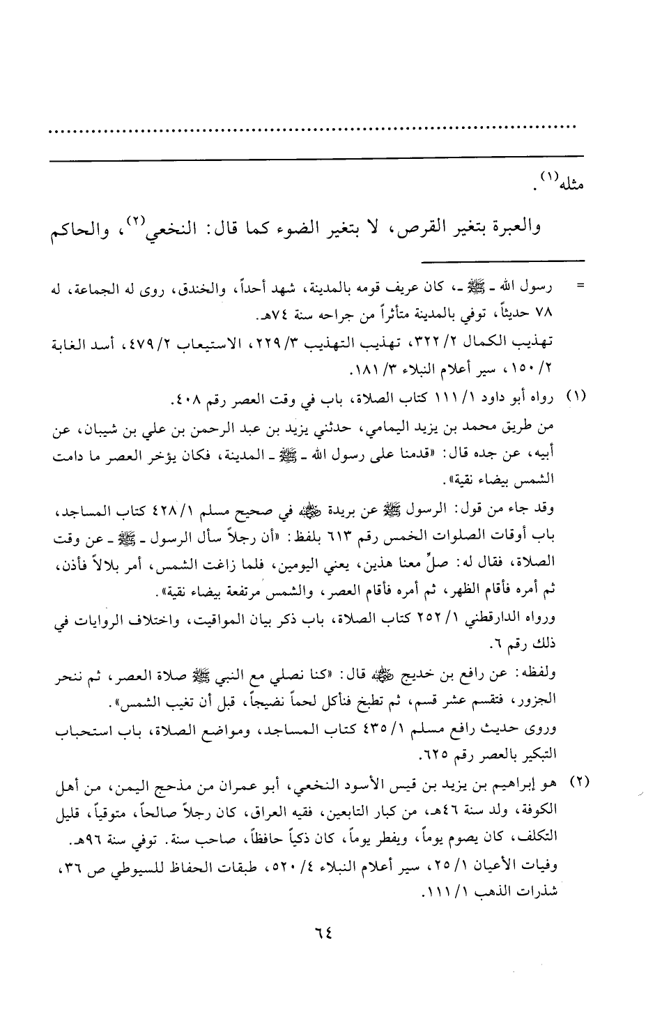 (¬٢) هو إبراهيم بن يزيد بن قيس الأسود النخعي، أبو عمران من مذحج اليمن، من أهل الكوفة، ولد سنة ٤٦ هـ، من كبار التابعين، فقيه العراق، كان رجلًا صالحًا، متوقيًا، قليل التكلف، كان يصوم يومًا، ويفطر يومًا، كان ذكيًا حافظًا، صاحب سنة. توفي سنة ٩٦ هـ.