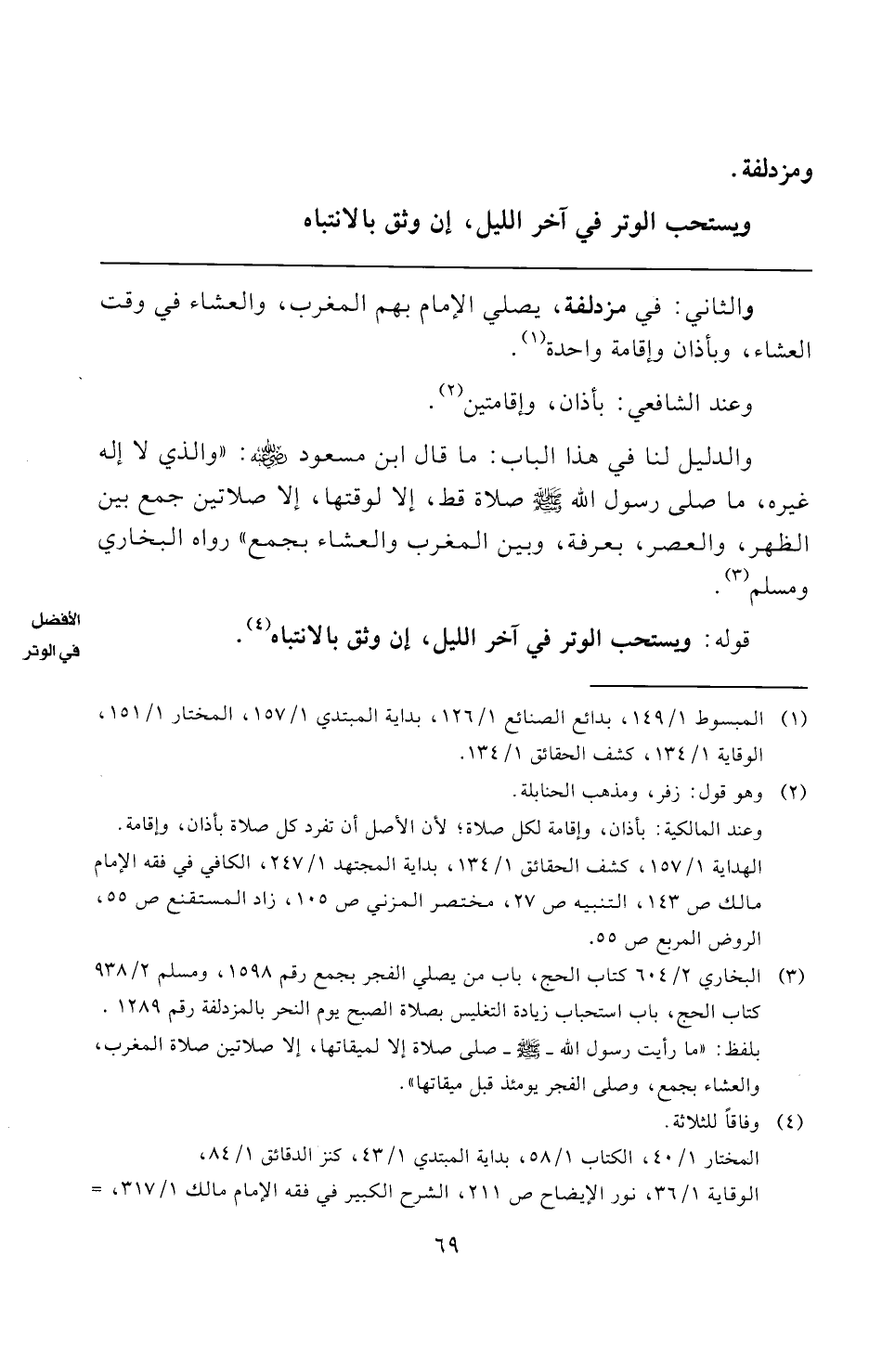 (¬١) المبسوط ١/ ١٤٩، بدائع الصنائع ١/ ١٢٦، بداية المبتدي ١/ ١٥٧، المختار ١/ ١٥١، الوقاية ١/ ١٣٤، كشف الحقائق ١/ ١٣٤.