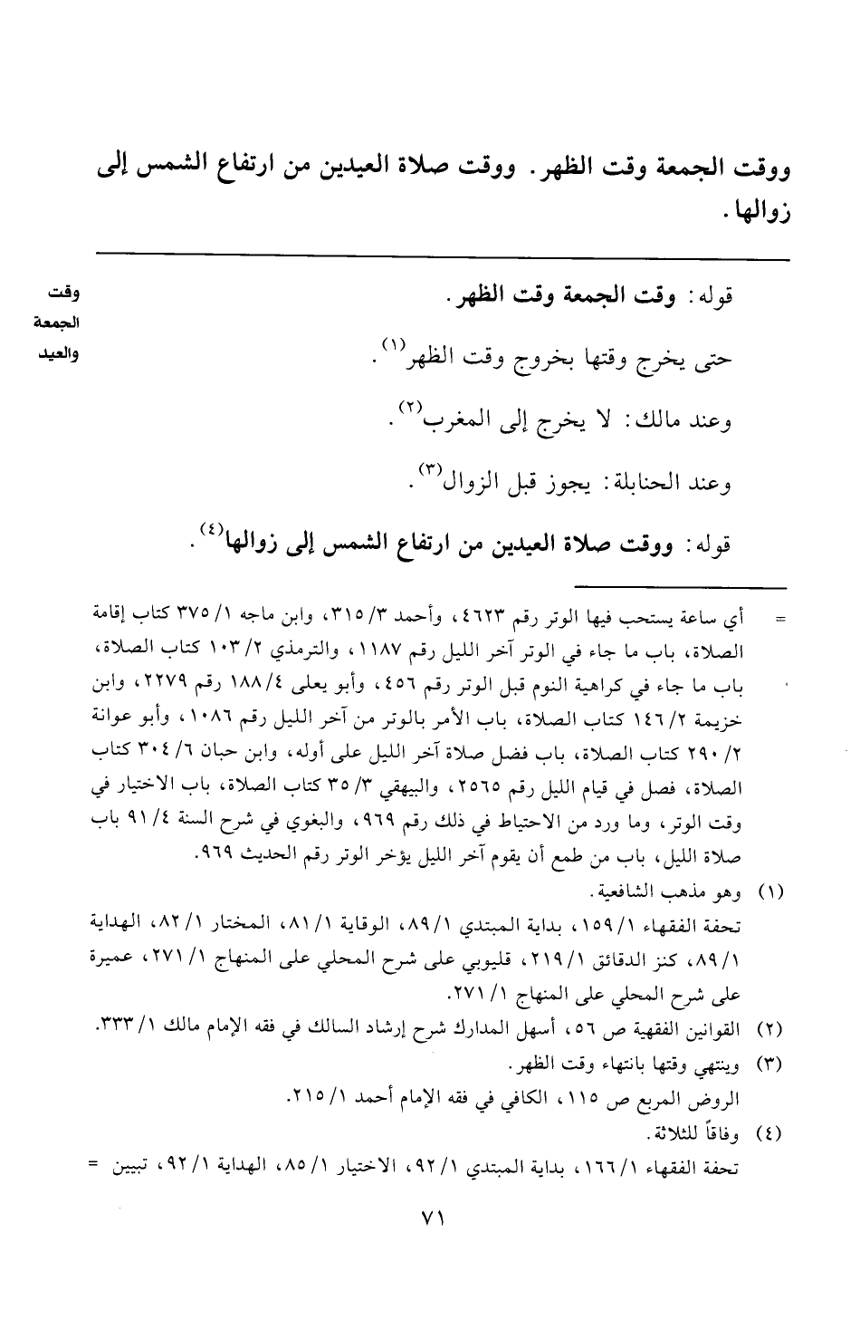 ووقت الجمعة وقت الظهر. ووقت صلاة العيدين من ارتفاع الشمس إلى زوالها.