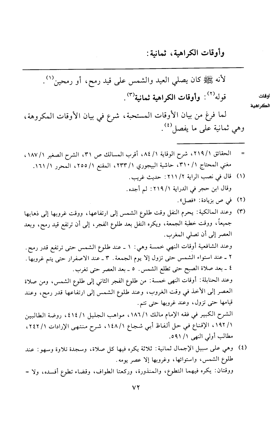 (¬٤) وهي على سبيل الإجمال ثمانية: ثلاثة يكره فيها كل صلاة، وسجدة تلاوة وسهو: عند طلوع الشمس، واستوائها، وغروبها إلا عصر يومه.