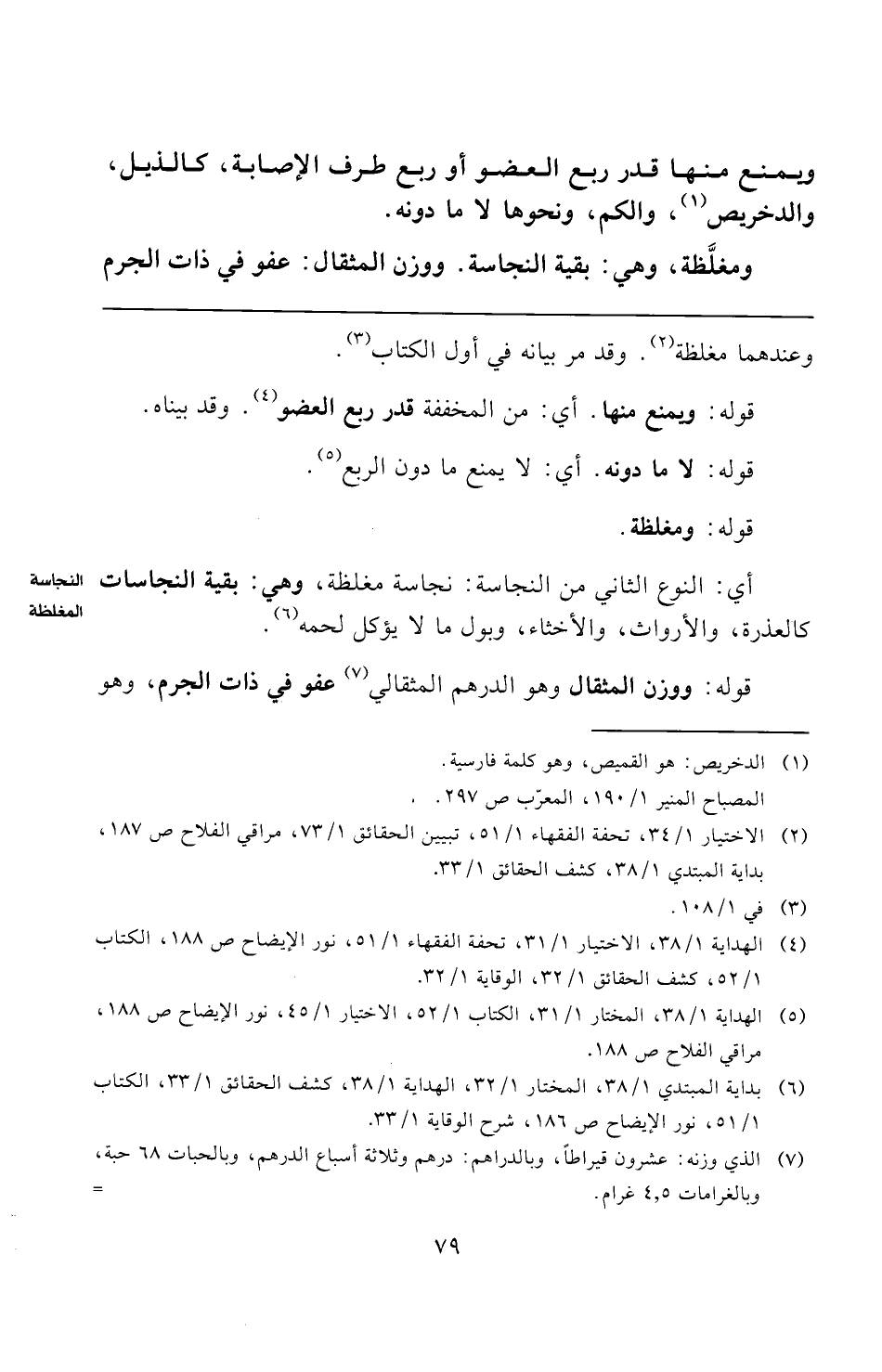 (¬٢) الاختيار ١/ ٣٤، تحفة الفقهاء ١/ ٥١، تبيين الحقائق ١/ ٧٣، مراقي الفلاح ص ١٨٧، بداية المبتدي ١/ ٣٨، كشف الحقائق ١/ ٣٣.