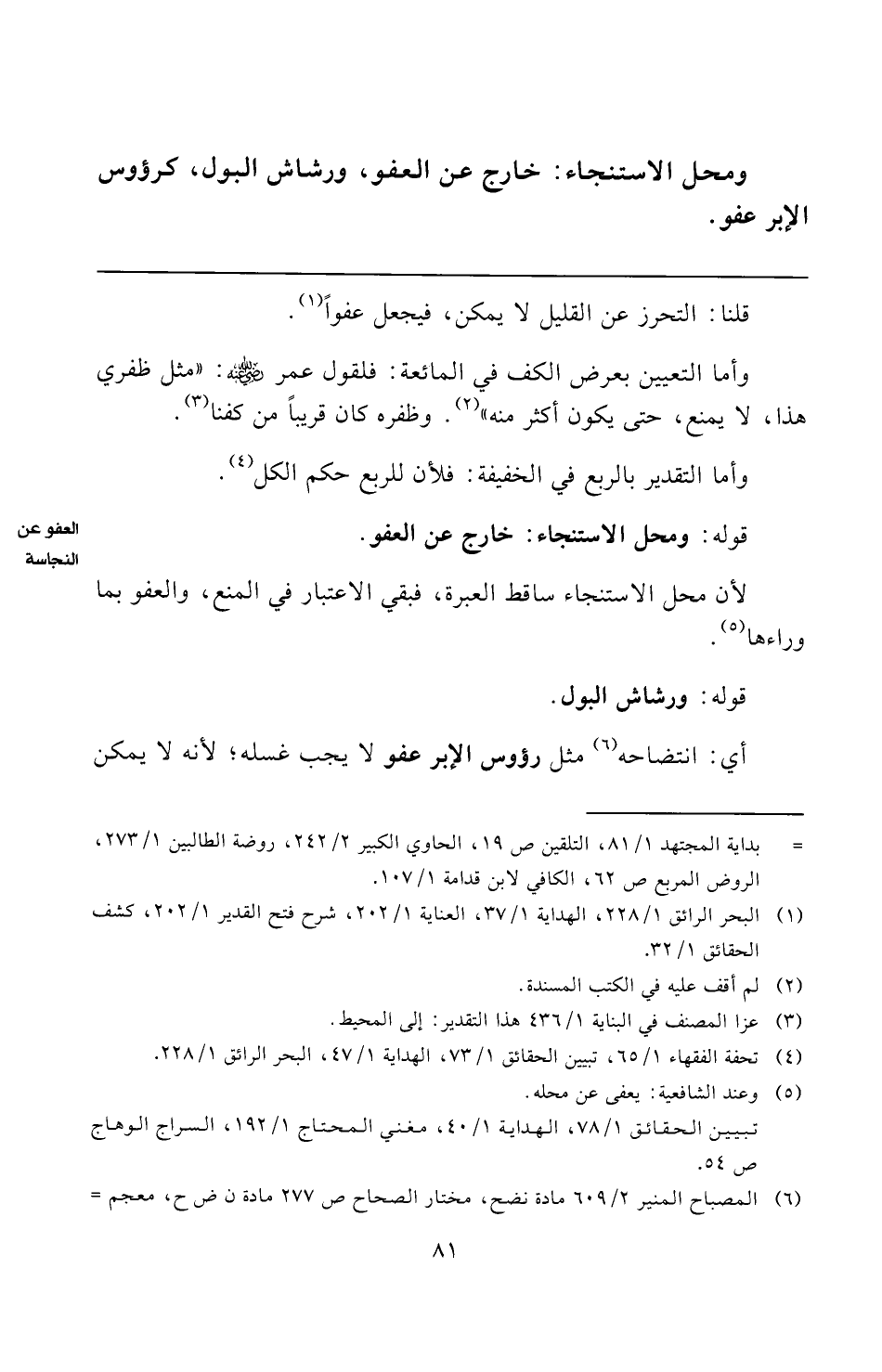 (¬١) البحر الرائق ١/ ٢٢٨، الهداية ١/ ٣٧، العناية ١/ ٢٠٢، شرح فتح القدير ١/ ٢٠٢، كشف الحقائق ١/ ٣٢.