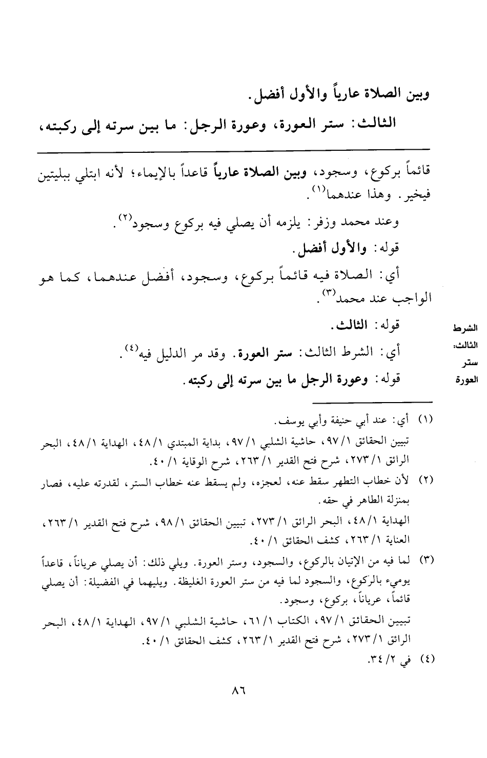 تبيين الحقائق ١/ ٩٧، الكتاب ١/ ٦١، حاشية الشلبي ١/ ٩٧، الهداية ١/ ٤٨، البحر الرائق ١/ ٢٧٣، شرح فتح القدير ١/ ٢٦٣، كشف الحقائق ١/ ٤٠.