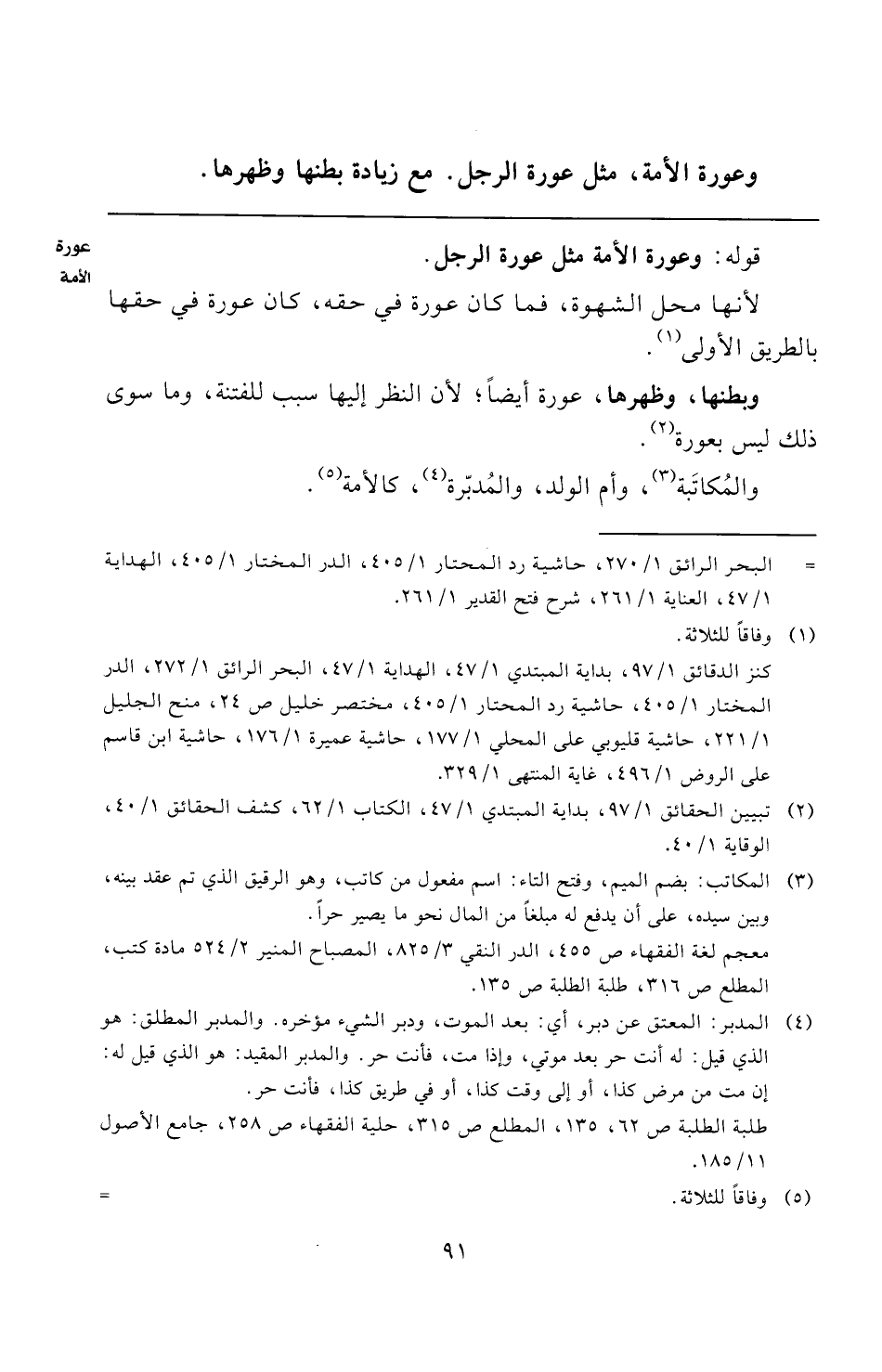 وعورة الأمة، مثل عورة الرجل. مع زيادة بطنها وظهرها.