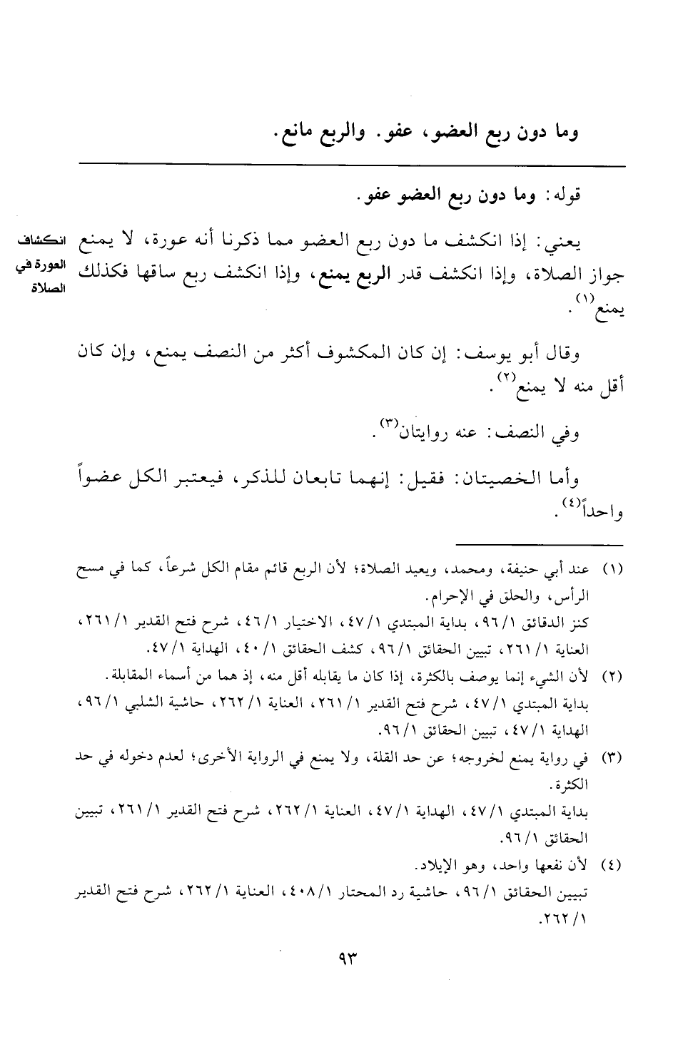 كنز الدقائق ١/ ٩٦، بداية المبتدي ١/ ٤٧، الاختيار ١/ ٤٦، شرح فتح القدير ١/ ٢٦١، العناية ١/ ٢٦١، تبيين الحقائق ١/ ٩٦، كشف الحقائق ١/ ٤٠، الهداية ١/ ٤٧.