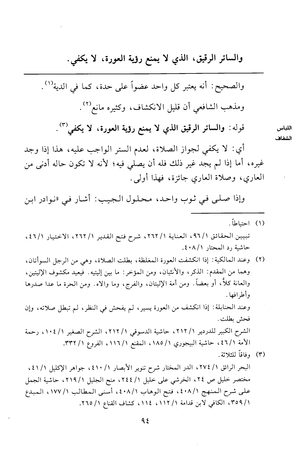 والساتر الرقيق، الذي لا يمنع رؤية العورة، لا يكفي.