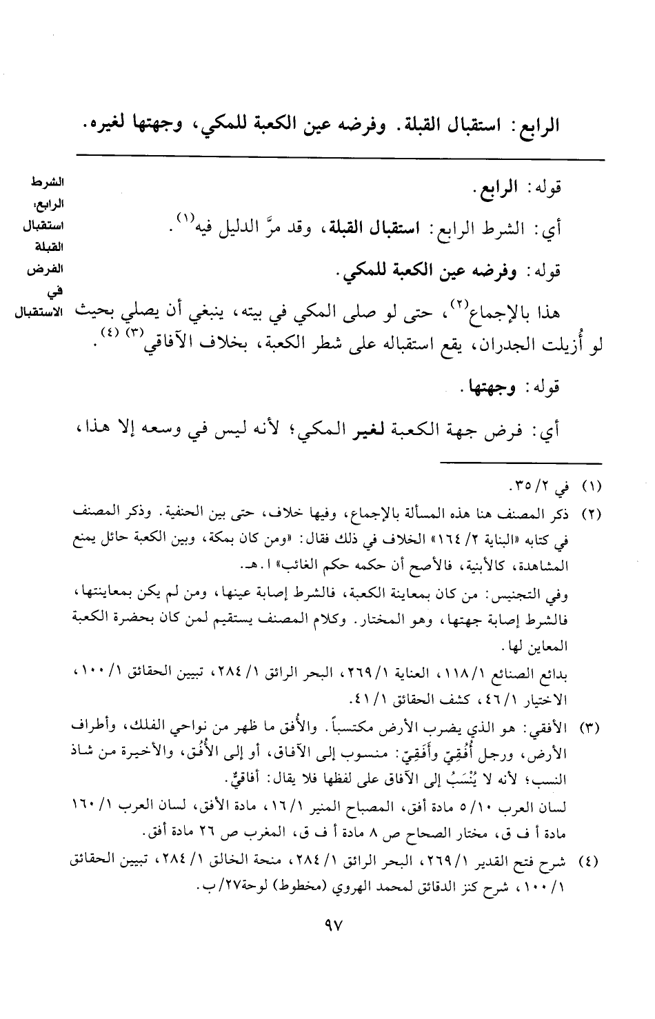 (¬٤) شرح فتح القدير ١/ ٢٦٩، البحر الرائق ١/ ٢٨٤، منحة الخالق ١/ ٢٨٤، تبيين الحقائق ١/ ١٠٠، شرح كنز الدقائق لمحمد الهروي (مخطوط) لوحة ٢٧/ ب.