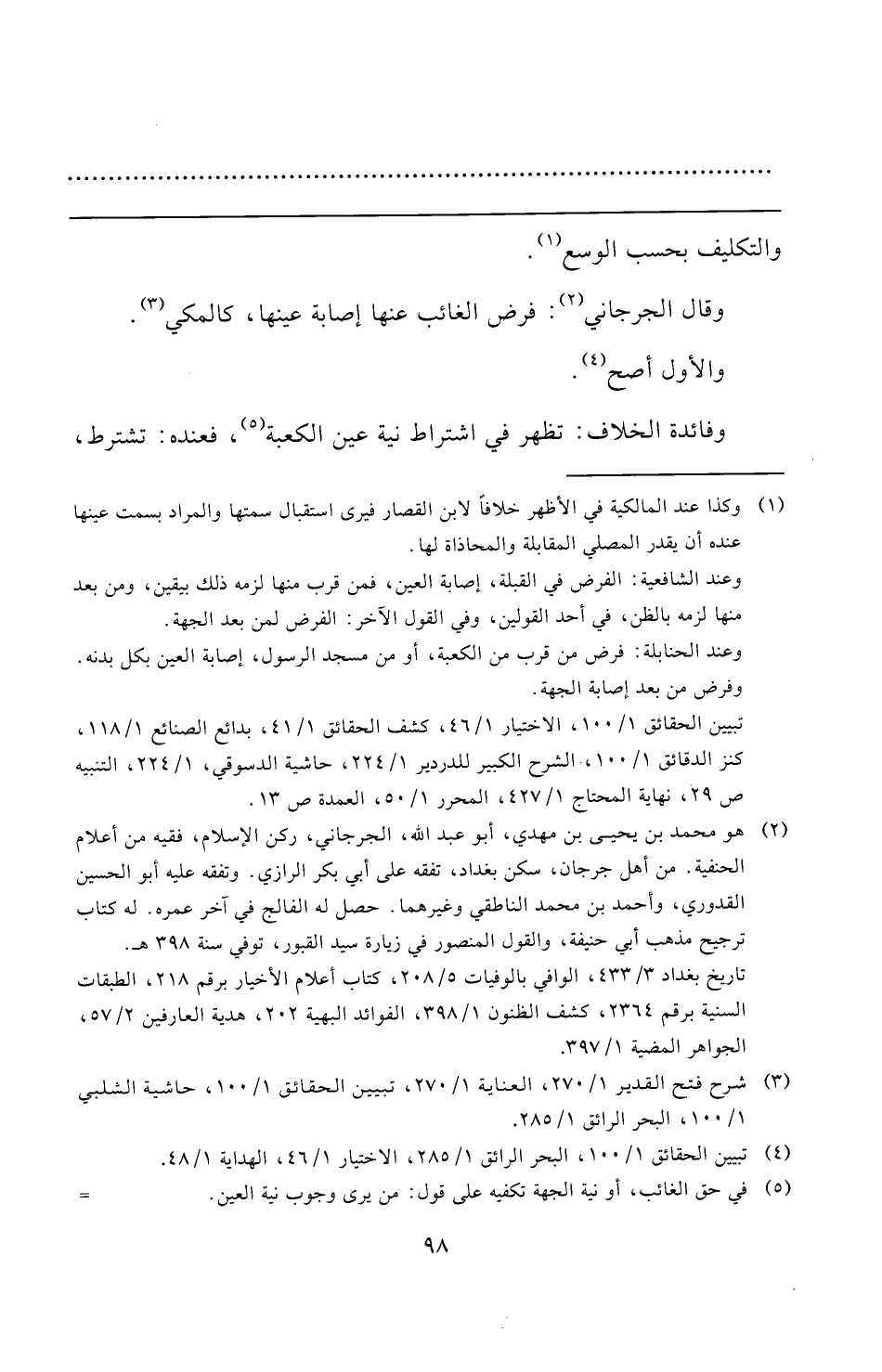 (¬٣) شرح فتح القدير ١/ ٢٧٠، العناية ١/ ٢٧٠، تبيين الحقائق ١/ ١٠٠، حاشية الشلبي ١/ ١٠٠، البحر الرائق ١/ ٢٨٥.