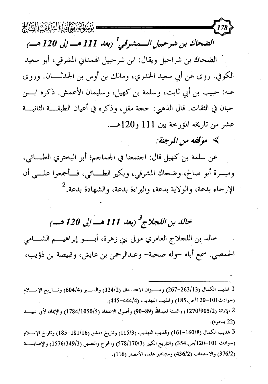 (¬3) تهذيب الكمال (8/ 160 - 161) وتهذيب التهذيب (3/ 115) وتاريخ دمشق (16/ 181 - 185) وتاريخ الإسلام (حوادث 101 - 120/ص.354) والتاريخ الكبير (3/ 170/578) والجرح والتعديل (3/ 349/1576) والإصابة (2/ 376) والاستيعاب (2/ 436) ومشاهير علماء الأمصار (116).