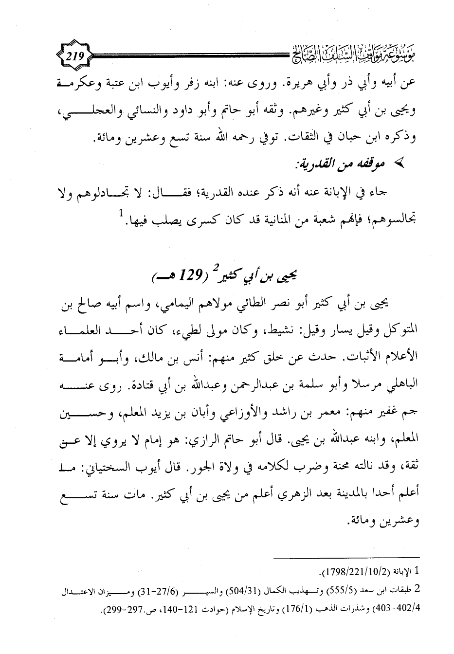 (¬2) طبقات ابن سعد (5/ 555) وتهذيب الكمال (31/ 504) والسير (6/ 27 - 31) وميزان الاعتدال 4/ 402 - 403) وشذرات الذهب (1/ 176) وتاريخ الإسلام (حوادث 121 - 140، ص.297 - 299).