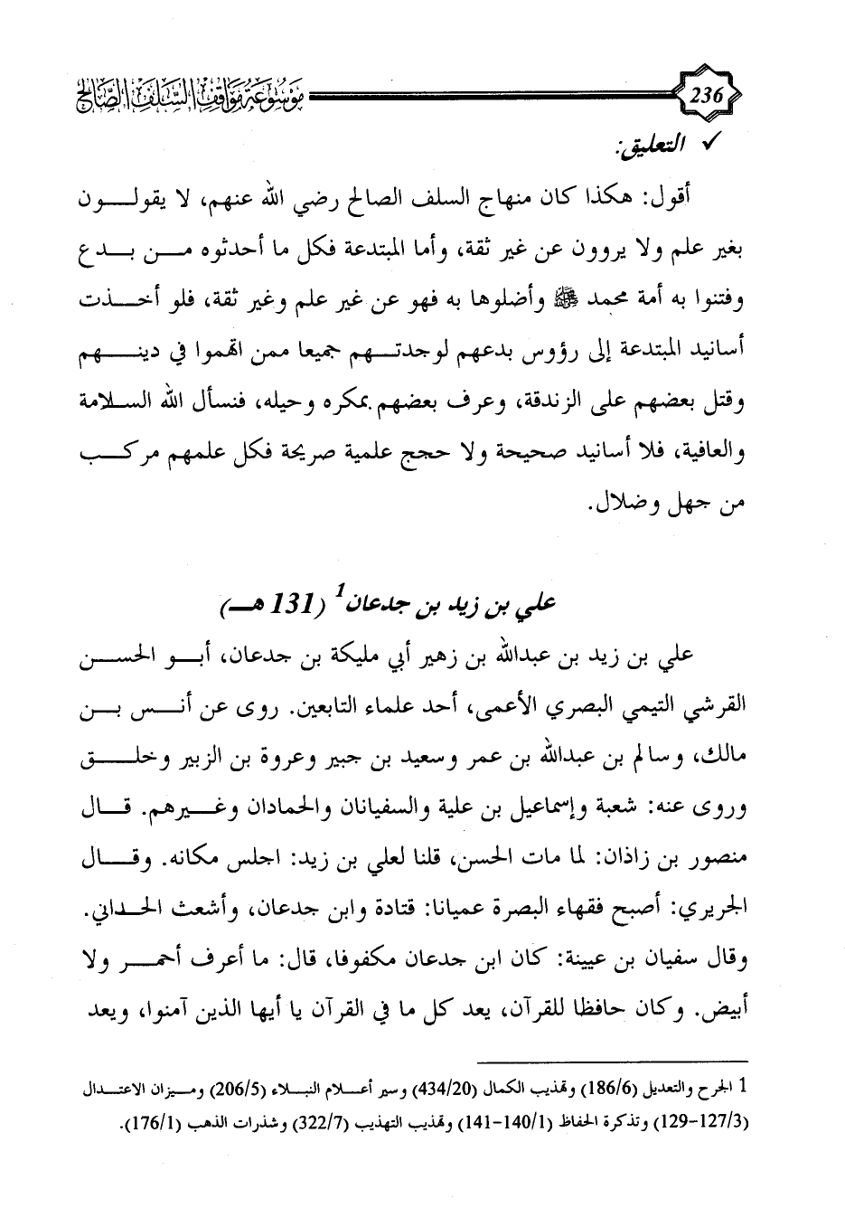 أقول: هكذا كان منهاج السلف الصالح رضي الله عنهم، لا يقولون بغير علم ولا يروون عن غير ثقة، وأما المبتدعة فكل ما أحدثوه من بدع وفتنوا به أمة محمد - صلى الله عليه وسلم - وأضلوها به فهو عن غير علم وغير ثقة، فلو أخذت أسانيد المبتدعة إلى رؤوس بدعهم لَوَجَدتهم جميعا مِمَّن اتهموا في دينهم وقتل بعضهم على الزندقة، وعرف بعضهم بمكره وحيله، فنسأل الله السلامة والعافية، فلا أسانيد صحيحة ولا حجج علمية صريحة فكل علمهم مركب من جهل وضلال.