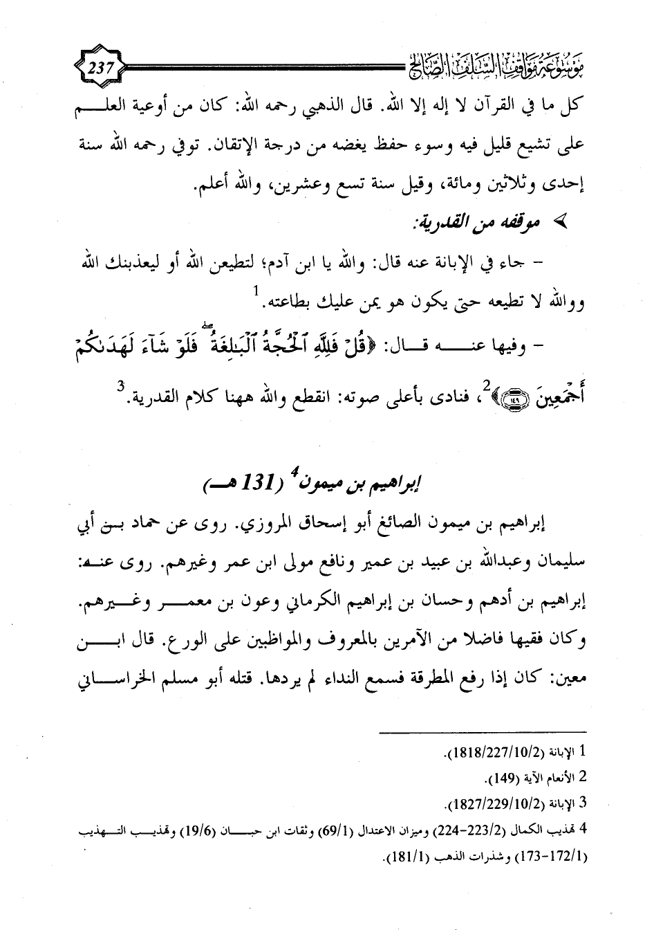 (¬4) تهذيب الكمال (2/ 223 - 224) وميزان الاعتدال (1/ 69) وثقات ابن حبان (6/ 19) وتهذيب التهذيب (1/ 172 - 173) وشذرات الذهب (1/ 181).