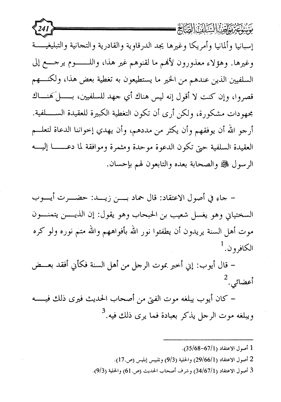 (¬2) أصول الاعتقاد (1/ 66/29) والحلية (3/ 9) وتلبيس إبليس (ص.17).