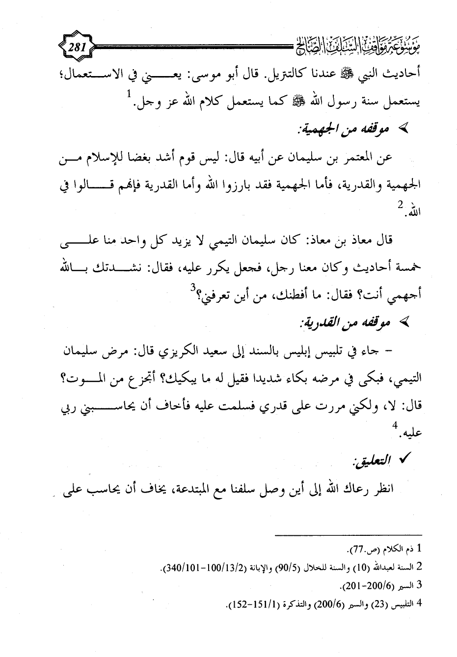 (¬2) السنة لعبد الله (10) والسنة للخلال (5/ 90) والإبانة (2/ 13/100 - 101/ 340).