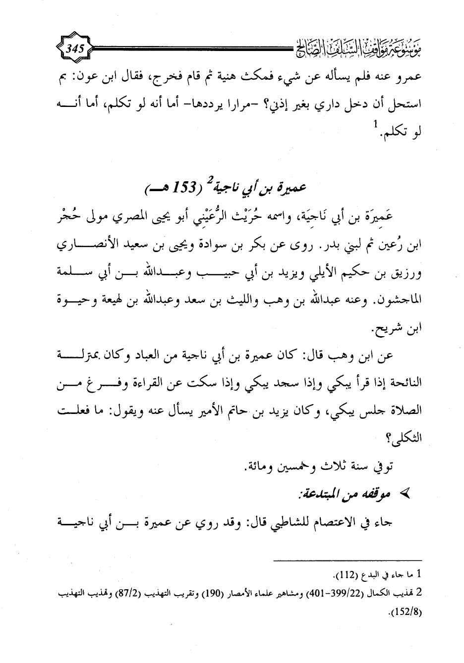 جاء في الاعتصام للشاطبي قال: وقد روي عن عميرة بن أبي ناجية