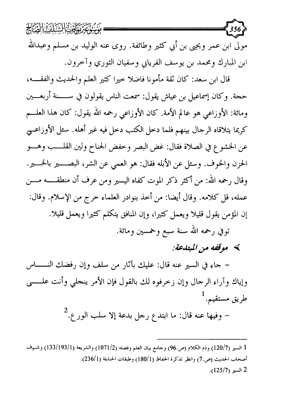 (¬1) السير (7/ 120) وذم الكلام (ص.96) وجامع بيان العلم وفضله (2/ 1071) والشريعة (1/ 193/133) وشرف أصحاب الحديث (ص.7) وانظر تذكرة الحفاظ (1/ 180) وطبقات الحنابلة (1/ 236).
