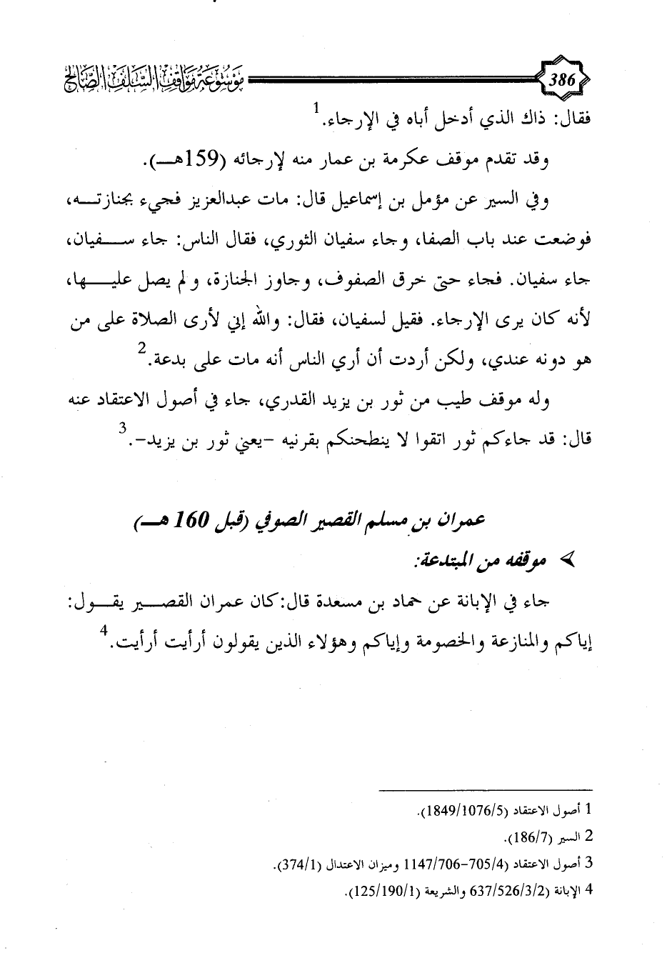 (¬3) أصول الاعتقاد (4/ 705 - 706/ 1147 وميزان الاعتدال (1/ 374).