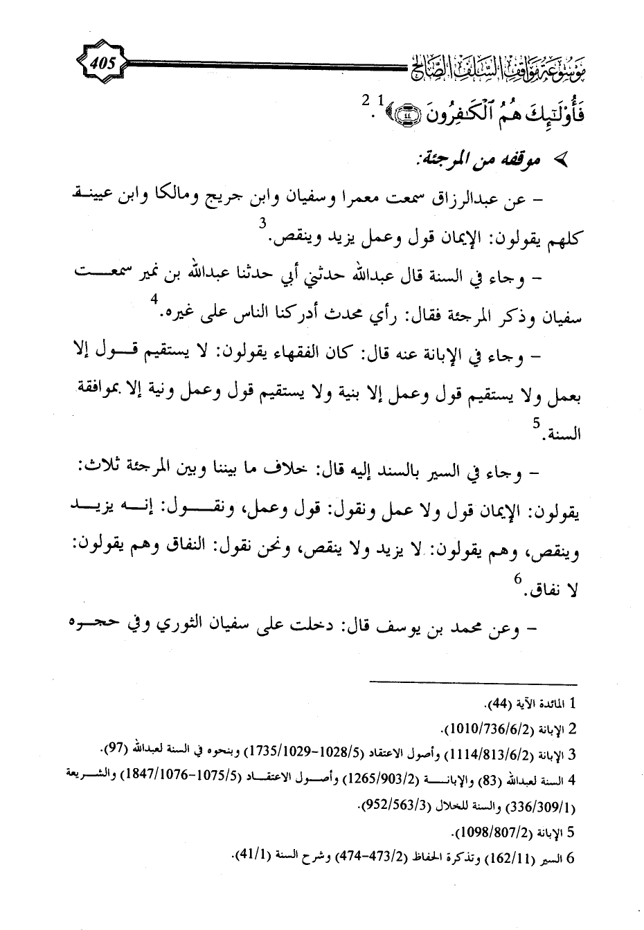 (¬4) السنة لعبد الله (83) والإبانة (2/ 903/1265) وأصول الاعتقاد (5/ 1075 - 1076/ 1847) والشريعة (1/ 309/336) والسنة للخلال (3/ 563/952).