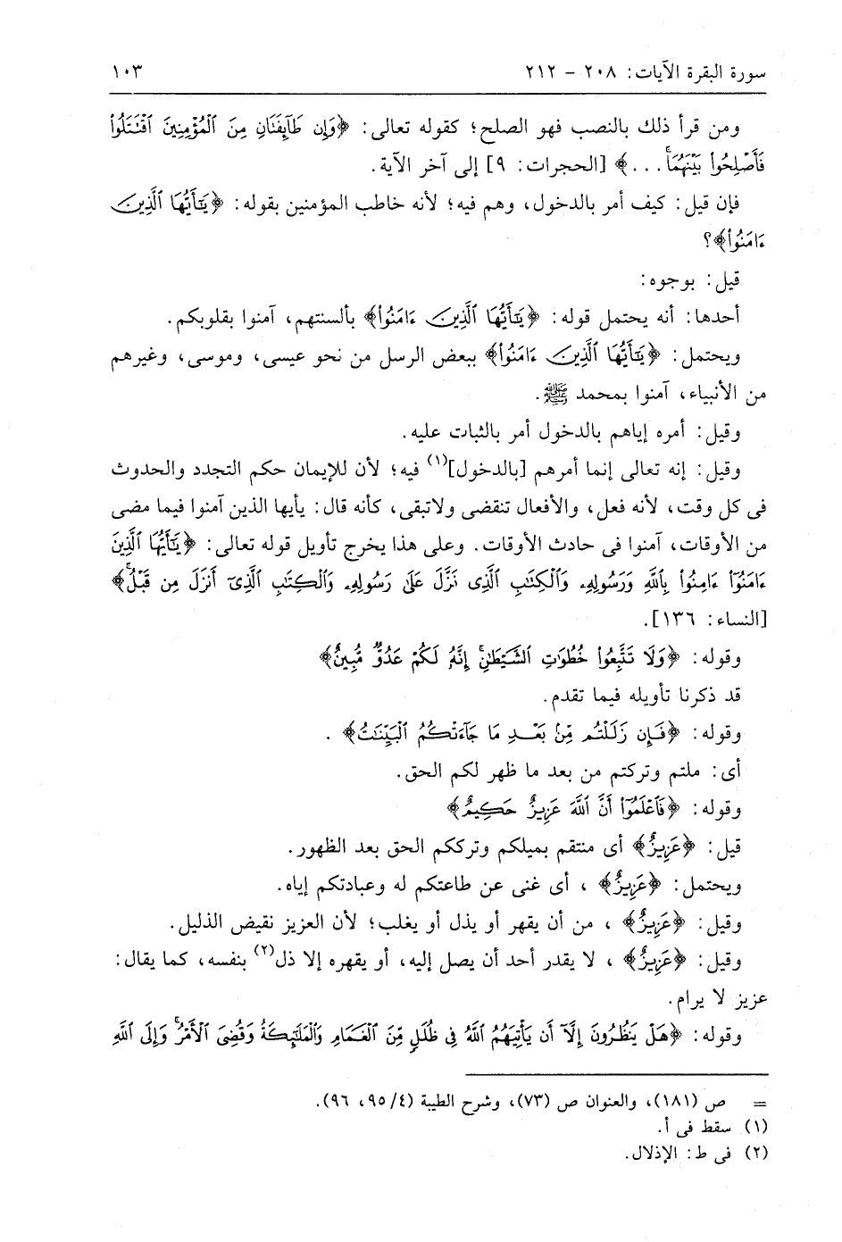 كتاب تفسير الماتريدي = تأويلات أهل السنة (اسم الجزء: 2)