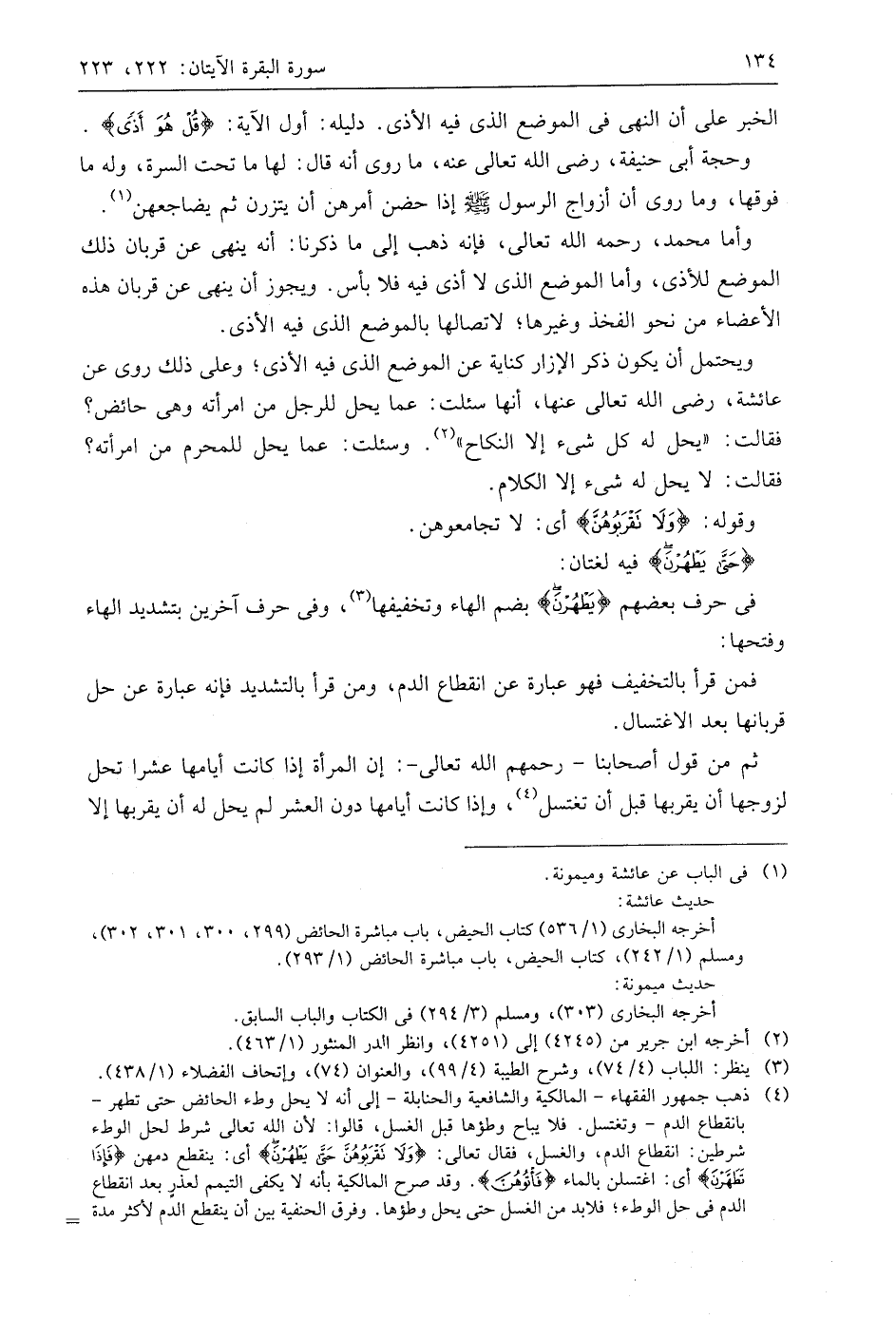 فمن قرأ بالتخفيف فهو عبارة عن انقطاع الدم، ومن قرأ بالتشديد فإنه عبارة عن حل قربانها بعد الاغتسال.