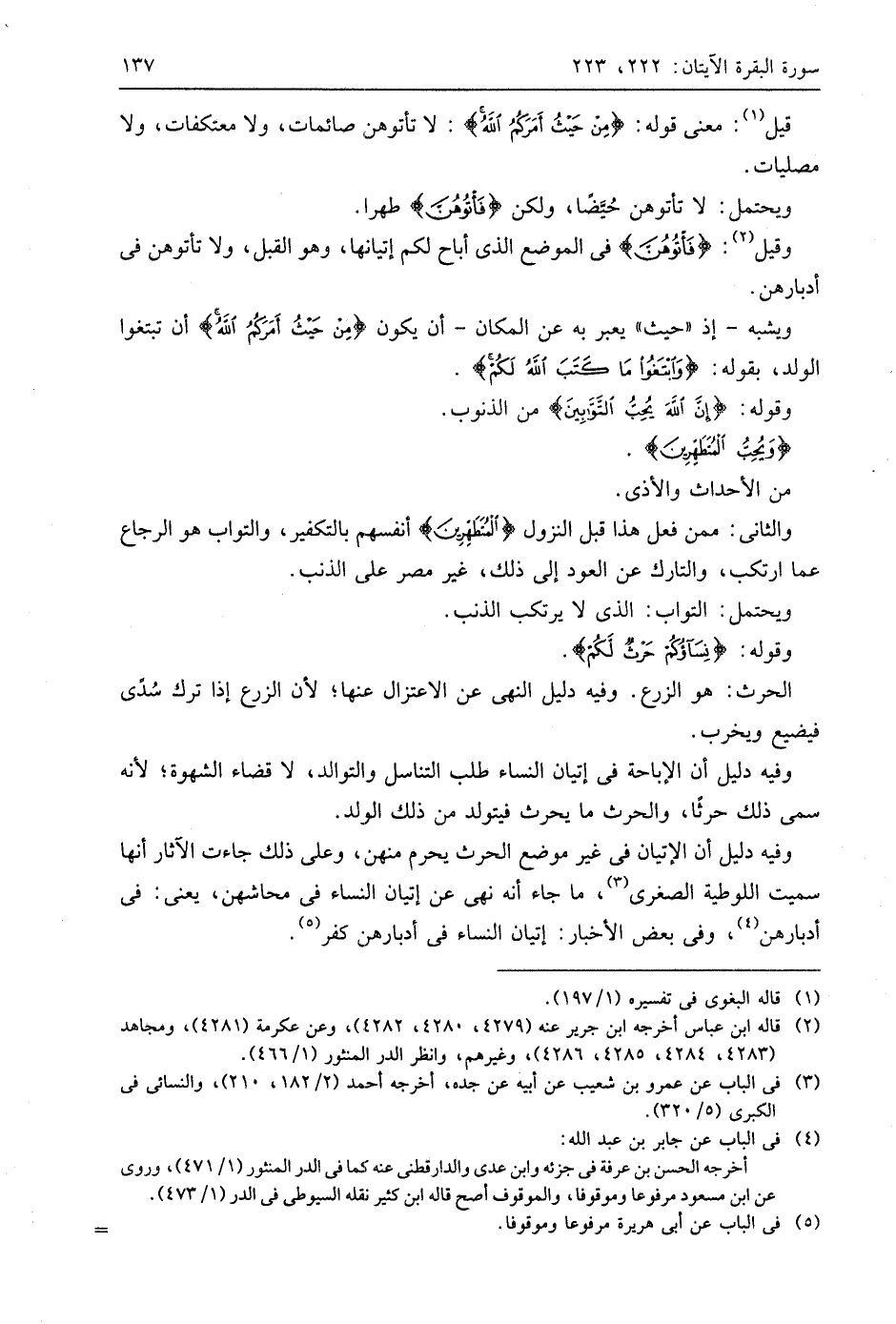 وقوله: (نِسَاؤُكُمْ حَرْثٌ لَكُمْ (223)