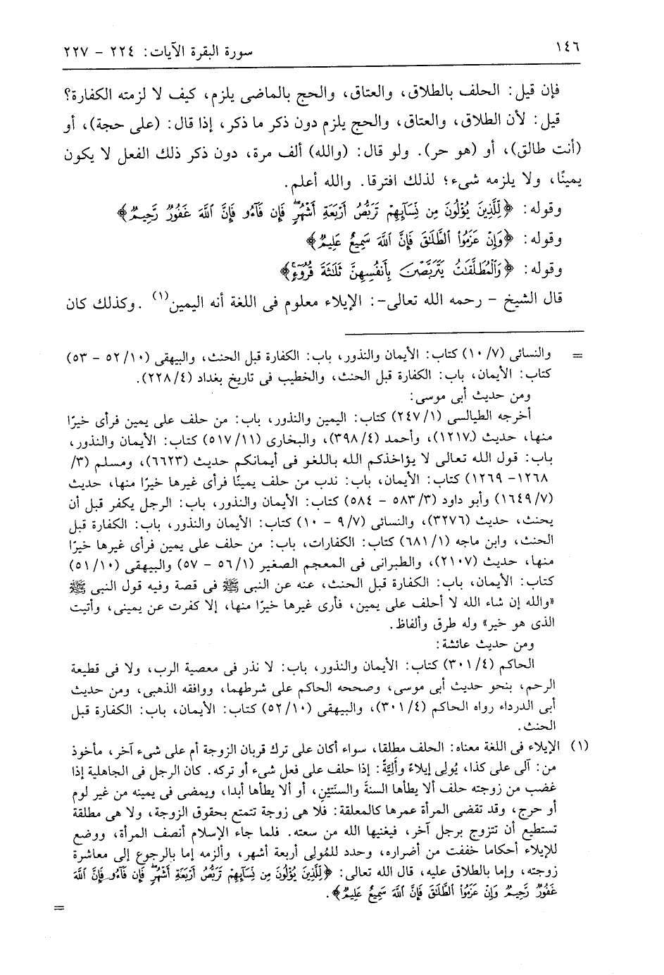 وقوله: (لِلَّذِينَ يُؤْلُونَ مِنْ نِسَائِهِمْ تَرَبُّصُ أَرْبَعَةِ أَشْهُرٍ فَإِنْ فَاءُوا فَإِنَّ اللَّهَ غَفُورٌ رَحِيمٌ (226)