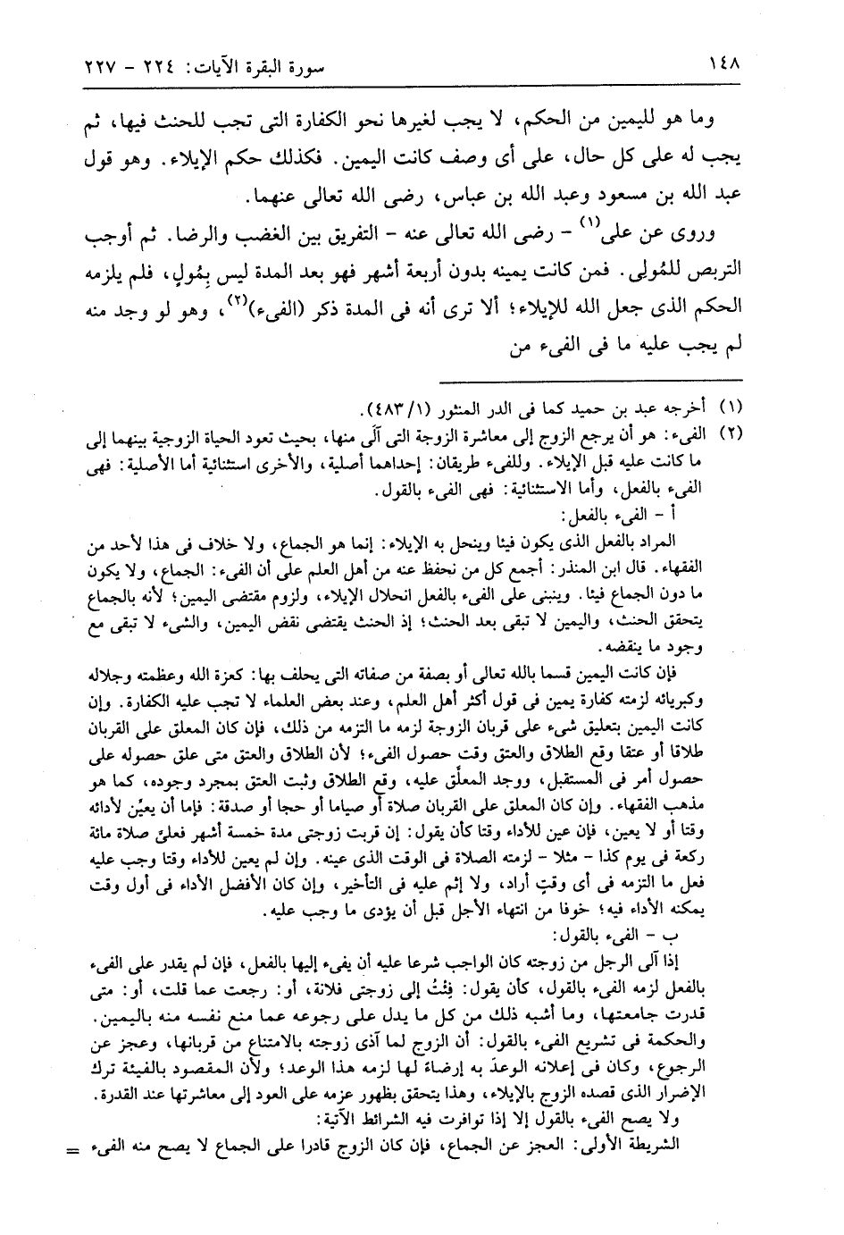 وما هو لليمين من الحكم، لا يجب لغيرها نحو الكفارة التي تجب للحنث فيها، ثم يجب له على كل حال، على أي وصف كانت اليمين. فكذلك حكم الإيلاء. وهو قول عبد اللَّه بن مسعود وعبد اللَّه بن عَبَّاسٍ، رضيَ اللَّهُ تعالى عنهما.