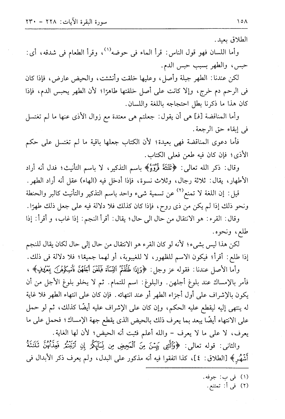 لكن هذا ليس بشيء؛ لأنه لو كان القرء هو الانتقال من حال إلى حال لكان يقال للنجم إذا طلع: أقرأ؛ فيكون الاسم للظهور، لا للغيبوبة، أو لهما جميعًا؛ فلا دلالة في ذلك.