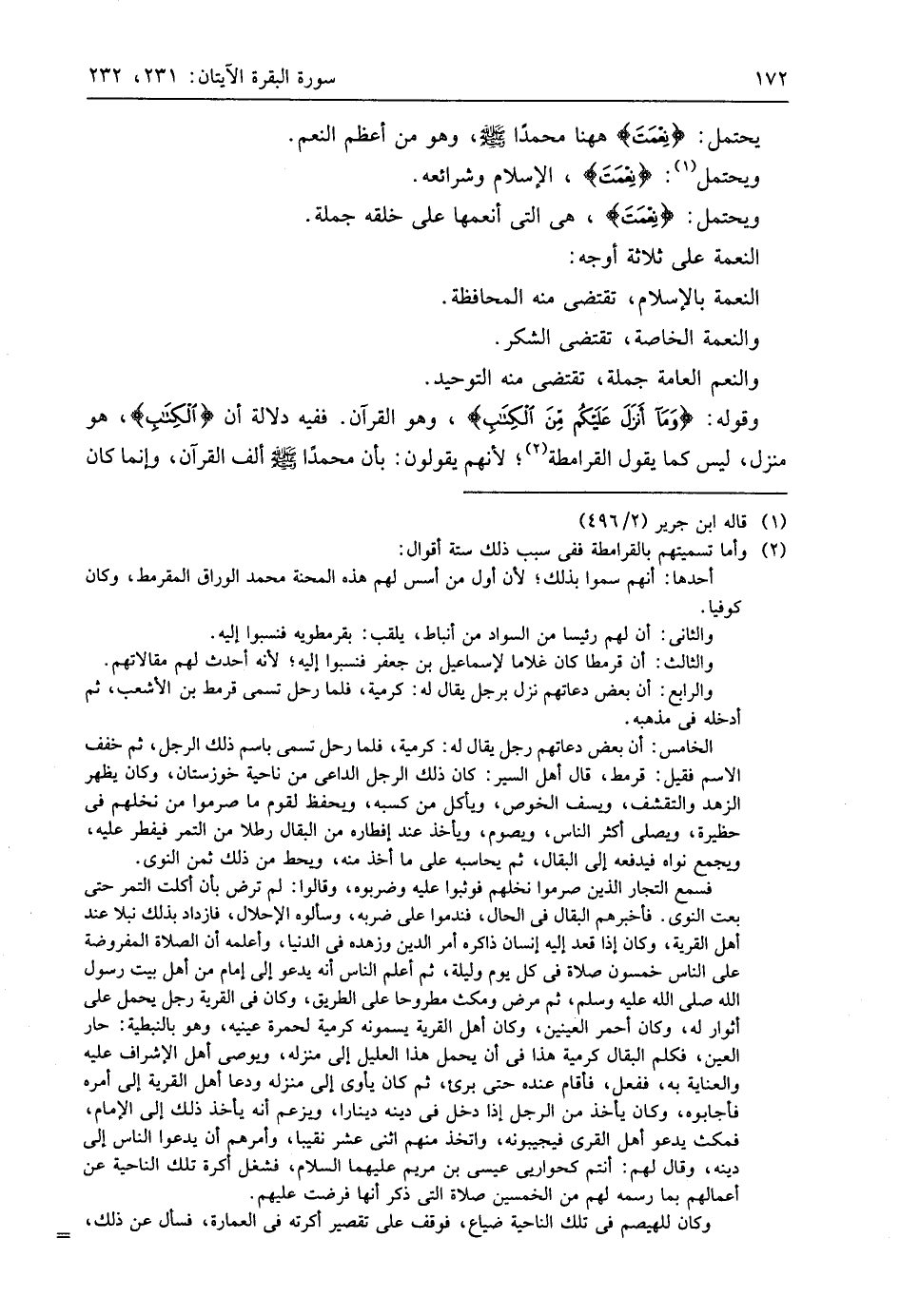 وقوله: (وَمَا أَنْزَلَ عَلَيْكُمْ مِنَ الْكِتَابِ)، وهو القرآن. ففيه دلالة أن (الْكِتَاب)، هو منزل، ليس كما يقول القرامطة؛ لأنهم يقولون: بأن محمدًا - صَلَّى اللَّهُ عَلَيهِ وَسَلَّمَ - ألف القرآن، وإنما كان