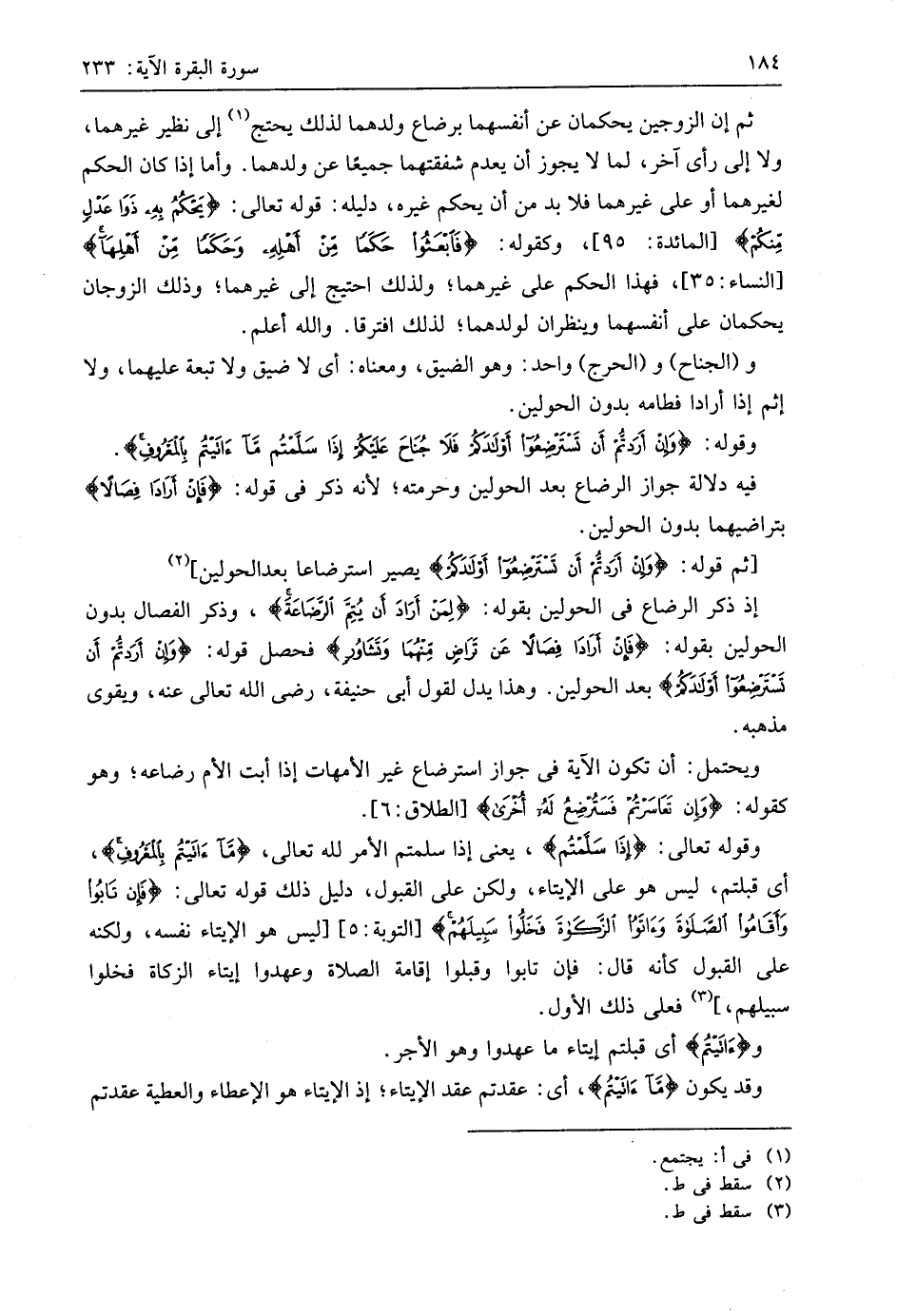 وقوله: (وَإِنْ أَرَدْتُمْ أَنْ تَسْتَرْضِعُوا أَوْلَادَكُمْ فَلَا جُنَاحَ عَلَيْكُمْ إِذَا سَلَّمْتُمْ مَا آتَيْتُمْ بِالْمَعْرُوفِ).