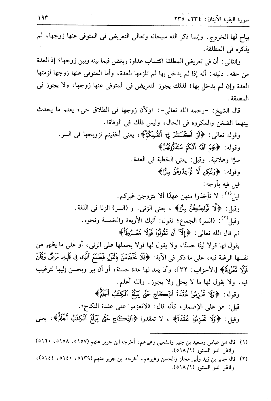 وقوله: (وَلَا تَعْزِمُوا عُقْدَةَ النِّكَاحِ حَتَّى يَبْلُغَ الْكِتَابُ أَجَلَهُ)