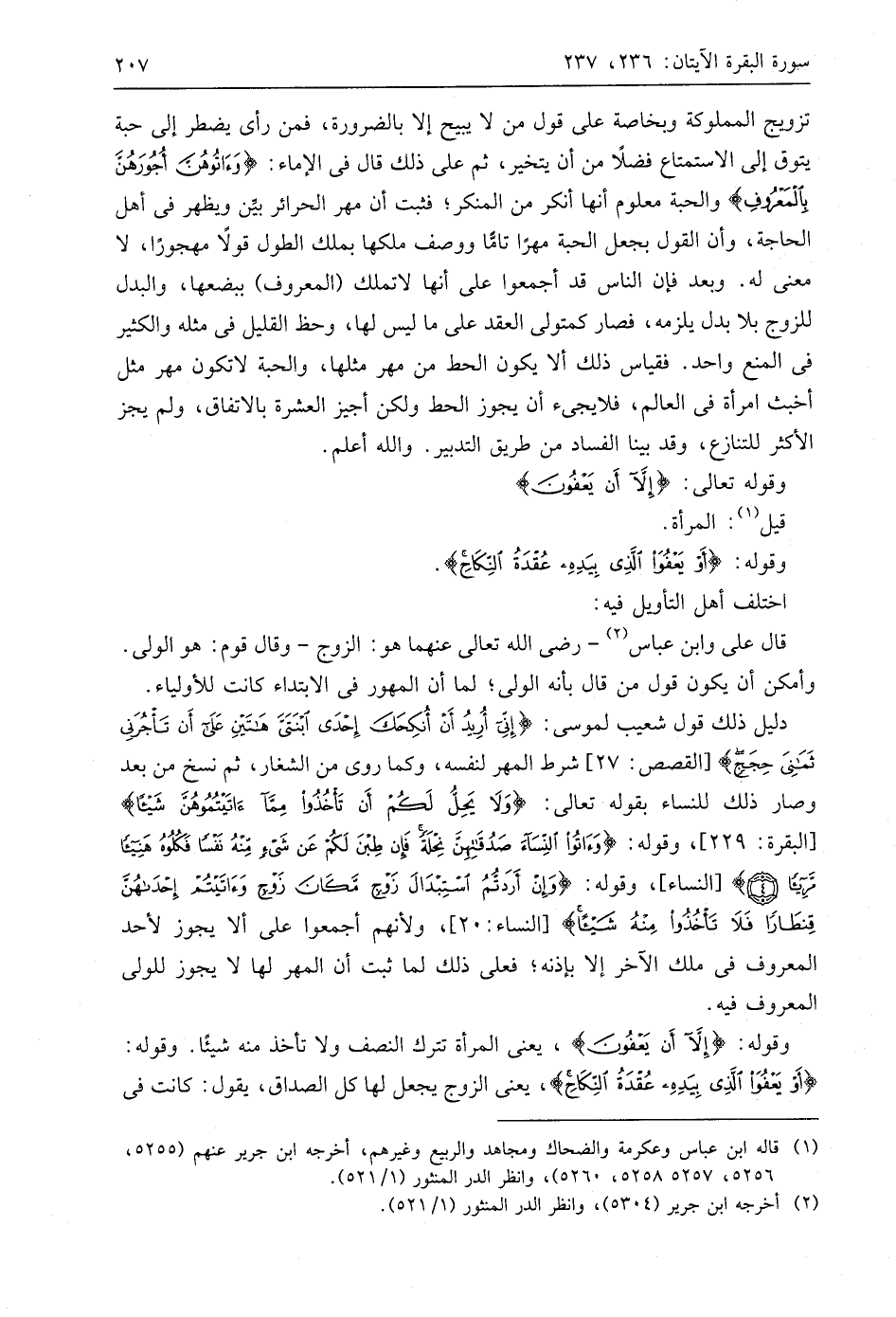 وقوله: (إِلَّا أَنْ يَعْفُونَ)، يعني المرأة تترك النصف ولا تأخذ منه شيئًا. وقوله: (أَوْ يَعْفُوَ الَّذِي بِيَدِهِ عُقْدَةُ النِّكَاحِ)، يعني الزوج يجعل لها كل الصداق، يقول: كانت في