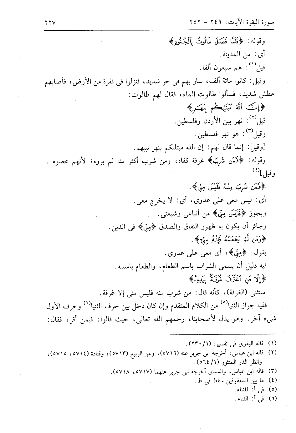وقوله: (فَلَمَّا فَصَلَ طَالُوتُ بِالْجُنُودِ (249)