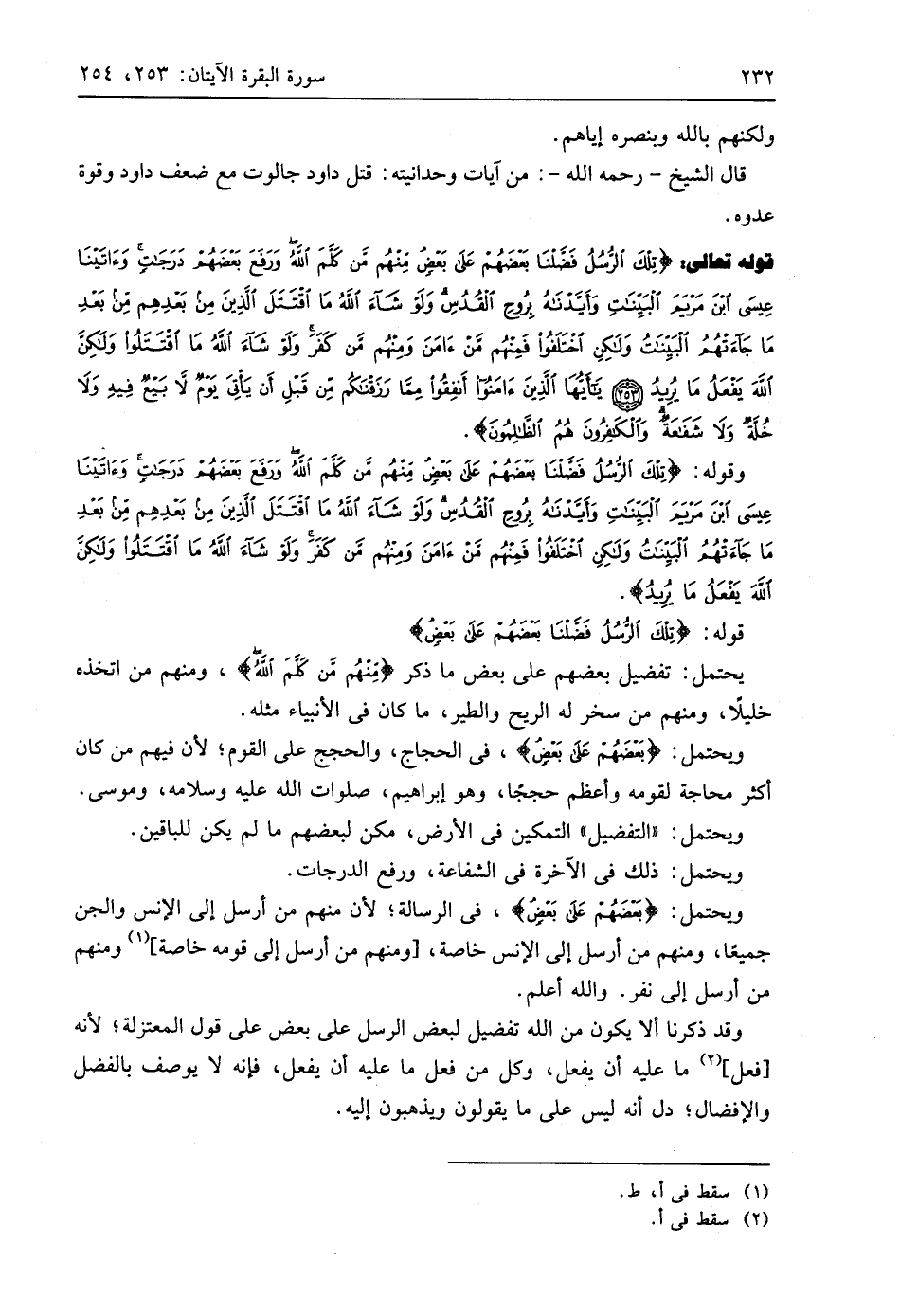 قوله: (تِلْكَ الرُّسُلُ فَضَّلْنَا بَعْضَهُمْ عَلَى بَعْضٍ)
