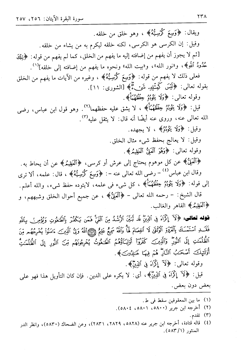 قوله تعالى: (لَا إِكْرَاهَ فِي الدِّينِ قَدْ تَبَيَّنَ الرُّشْدُ مِنَ الْغَيِّ فَمَنْ يَكْفُرْ بِالطَّاغُوتِ وَيُؤْمِنْ بِاللَّهِ فَقَدِ اسْتَمْسَكَ بِالْعُرْوَةِ الْوُثْقَى لَا انْفِصَامَ لَهَا وَاللَّهُ سَمِيعٌ عَلِيمٌ (256) اللَّهُ وَلِيُّ الَّذِينَ آمَنُوا يُخْرِجُهُمْ مِنَ الظُّلُمَاتِ إِلَى النُّورِ وَالَّذِينَ كَفَرُوا أَوْلِيَاؤُهُمُ الطَّاغُوتُ يُخْرِجُونَهُمْ مِنَ النُّورِ إِلَى الظُّلُمَاتِ أُولَئِكَ أَصْحَابُ النَّارِ هُمْ فِيهَا خَالِدُونَ (257)