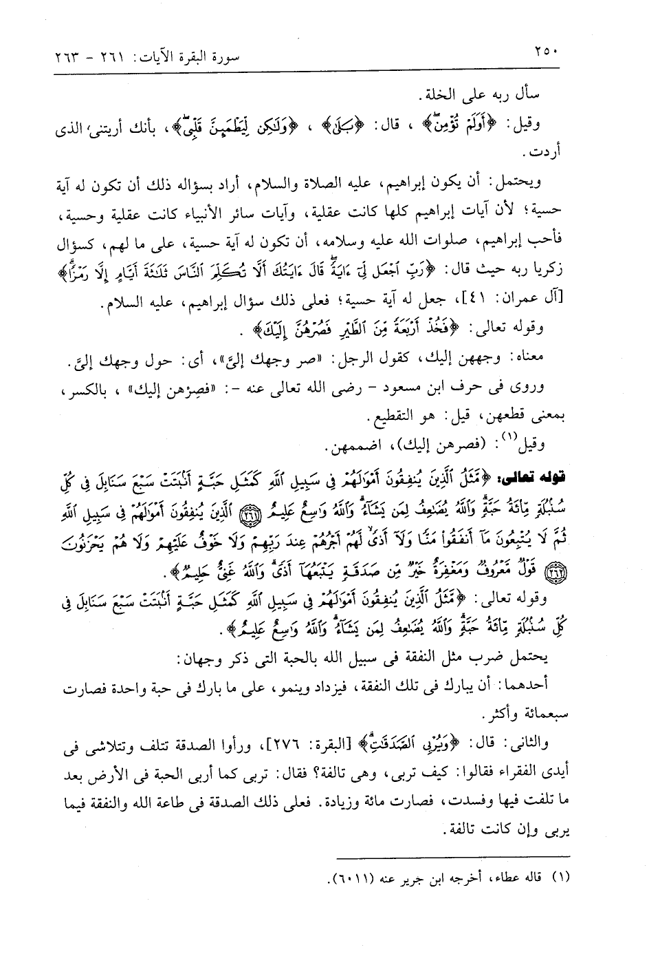 وقوله تعالى: (فَخُذْ أَرْبَعَةً مِنَ الطَّيْرِ فَصُرْهُنَّ إِلَيْكَ).