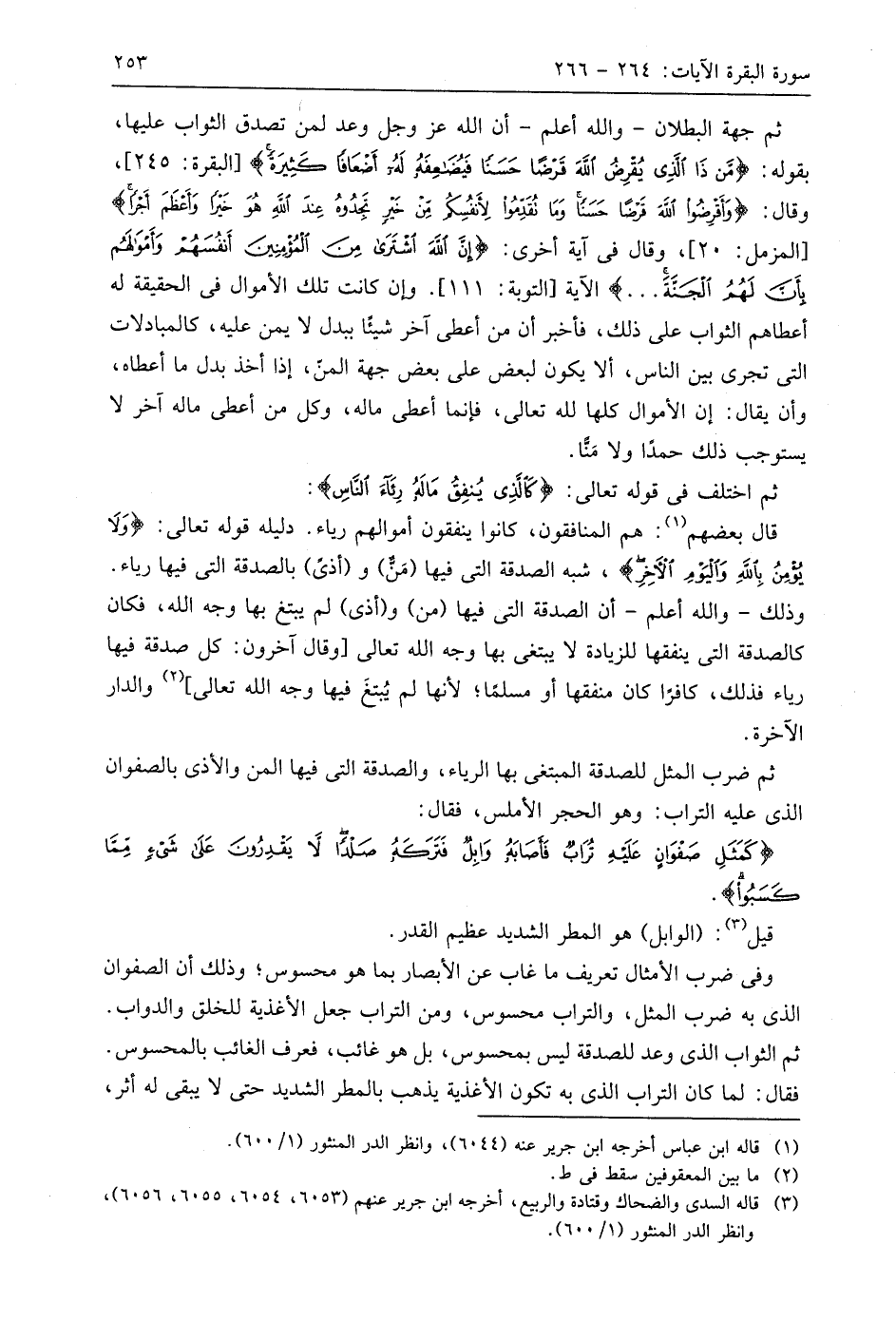 وذلك - واللَّه أعلم - أن الصدقة التي فيها (مَنٌّ) و (أذى) لم يبتغ بها وجه اللَّه، فكان كالصدقة التي ينفقها للزيادة لا يبتغى بها وجه اللَّه تعالى أوقال آخرون: كل صدقة فيها رياء فذلك، كافرًا كان منفقها أو مسلما؛ لأنها لم يُبتغَ فيها وجه اللَّه تعالى، والدار الآخرة.