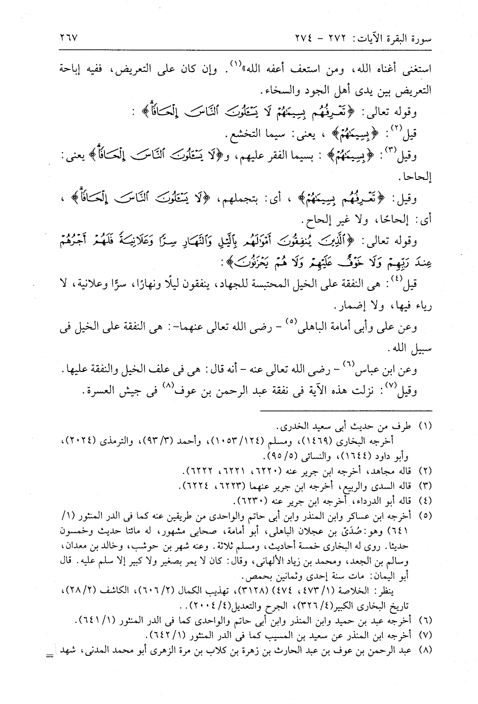 وقوله تعالى: (الَّذِينَ يُنْفِقُونَ أَمْوَالَهُمْ بِاللَّيْلِ وَالنَّهَارِ سِرًّا وَعَلَانِيَةً فَلَهُمْ أَجْرُهُمْ عِنْدَ رَبِّهِمْ وَلَا خَوْفٌ عَلَيْهِمْ وَلَا هُمْ يَحْزَنُونَ (274)