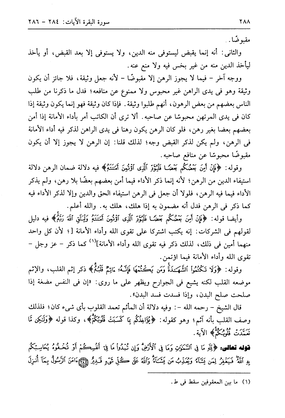 قوله تعالى: (لِلَّهِ مَا فِي السَّمَاوَاتِ وَمَا فِي الْأَرْضِ وَإِنْ تُبْدُوا مَا فِي أَنْفُسِكُمْ أَوْ تُخْفُوهُ يُحَاسِبْكُمْ بِهِ اللَّهُ فَيَغْفِرُ لِمَنْ يَشَاءُ وَيُعَذِّبُ مَنْ يَشَاءُ وَاللَّهُ عَلَى كُلِّ شَيْءٍ قَدِيرٌ (284) آمَنَ الرَّسُولُ بِمَا أُنْزِلَ