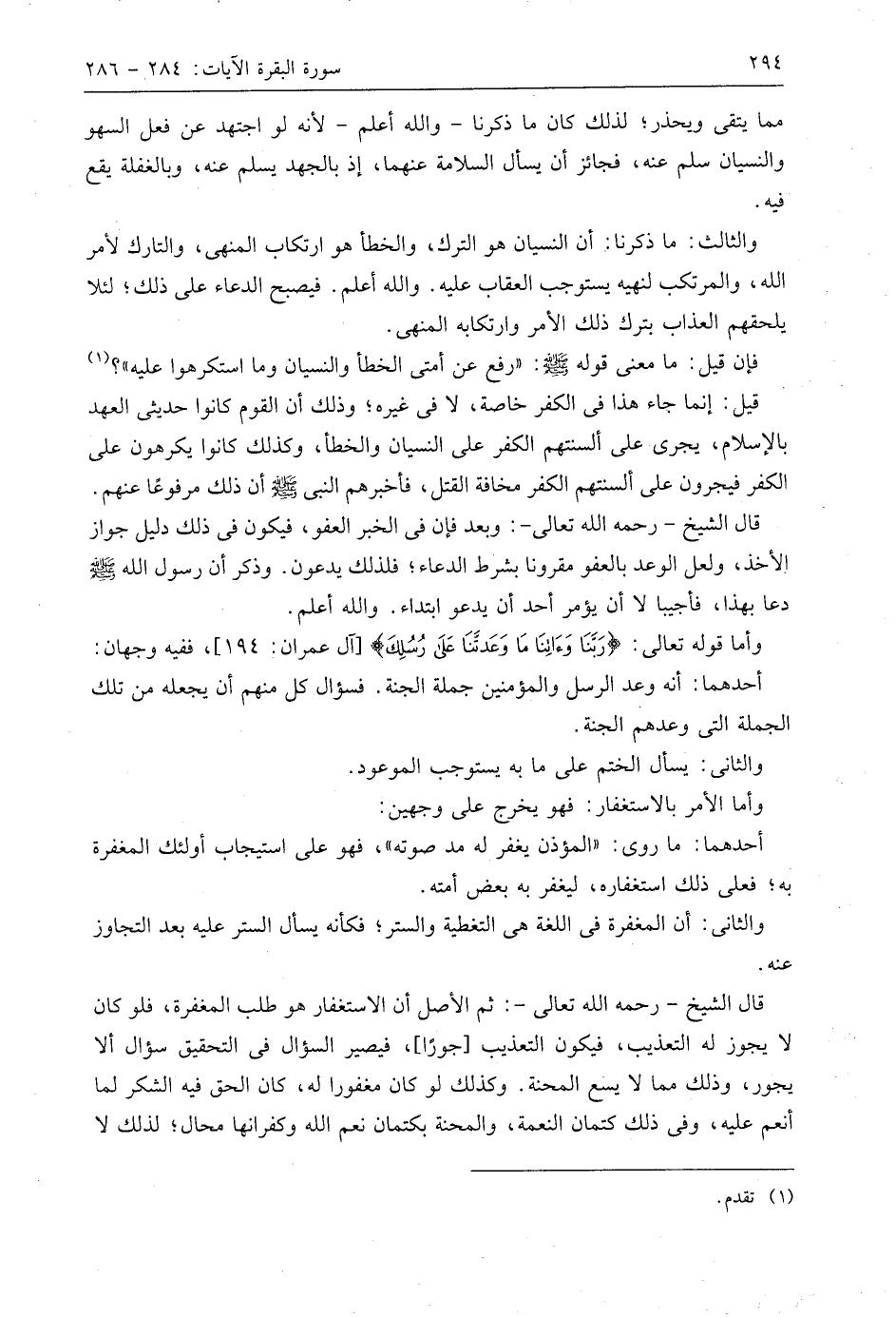 والثالث: ما ذكرنا: أن النسيان هو الترك، والخطأ هو ارتكاب المنهي، والتارك لأمر اللَّه، والمرتكب لنهيه يستوجب العقاب عليه. واللَّه أعلم. فيصبح الدعاء على ذلك؛ لئلا يلحقهم العذاب بترك ذلك الأمر وارتكابه المنهى.