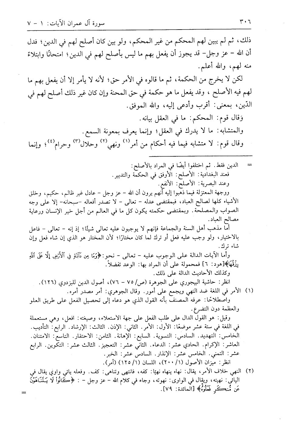 ذلك، ثم لم يبين لهم المحكم من غير المحكم، ولو بين كان أصلح لهم في الدِّين؛ فدل أن اللَّه - عَزَّ وَجَلَّ - قد يجوز أن يفعل بهم ما ليس بأصلح لهم في الدِّين؛ امتحانًا وابتلاءً منه لهم، واللَّه أعلم.