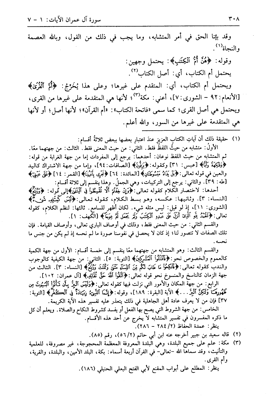 ويحتمل أم الكتاب، أي: المتقدم على غيرها؛ وعلى هذا يُخَرّجُ: (أُمَّ الْقُرَى) أعني: مكة؛ لأنها هي المتقدمة على غيرها من القرى، ويحتمل هي أصل القرى؛ كما سمى " فاتحة الكتاب ": " أم القرآن "؛ لأنها أصل؛ أو لأنها هي المتقدمة على غيرها من السور، واللَّه أعلم.