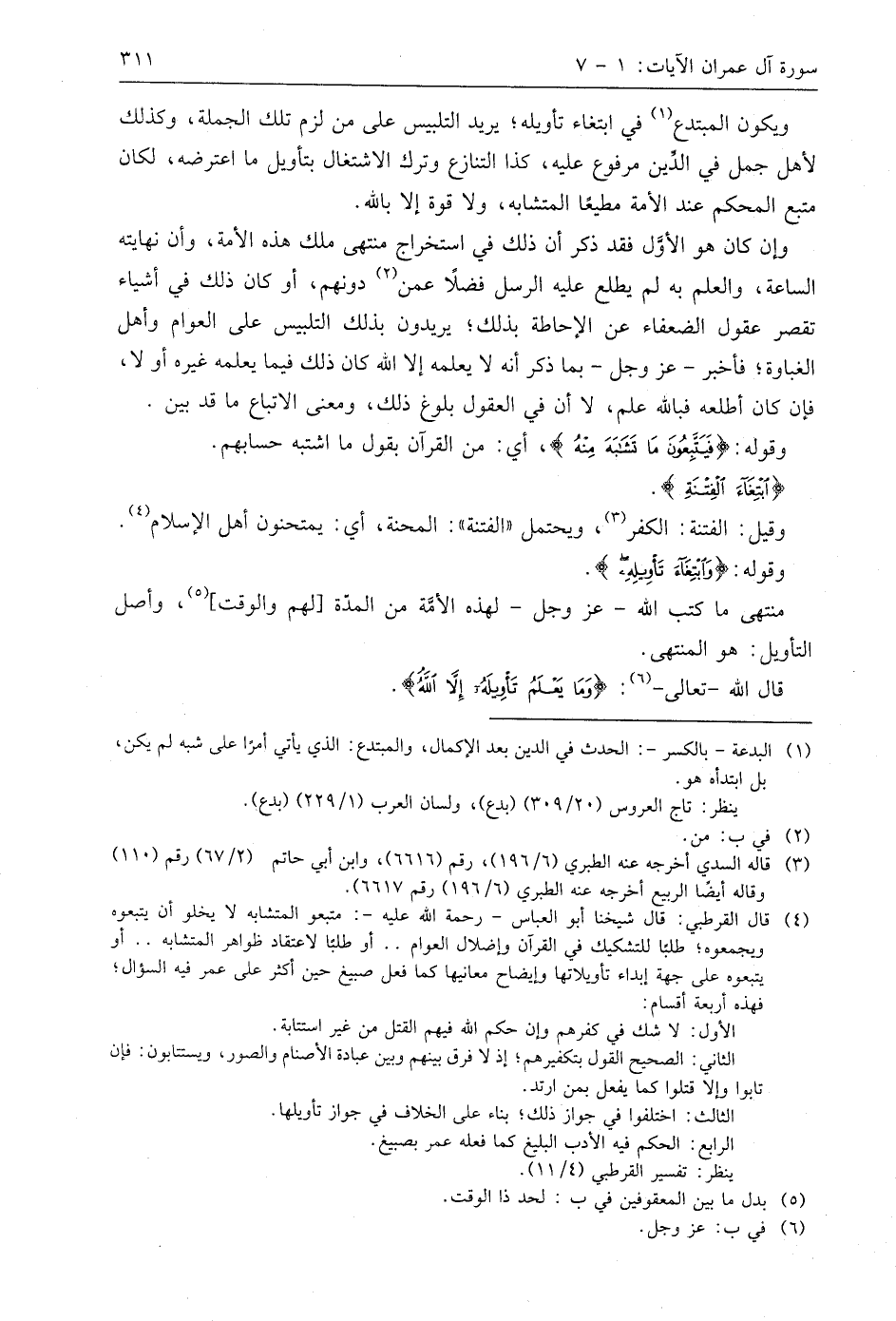 ويكون المبتدع في ابتغاء تأويله؛ يريد التلبيس على من لزم تلك الجملة، وكذلك لأهل جمل في الدِّين مرفوع عليه، كذا التنازع وترك الاشتغال بتأويل ما اعترضه، لكان متبع المحكم عند الأمة مطيعًا المتشابه، ولا قوة إلا باللَّه.