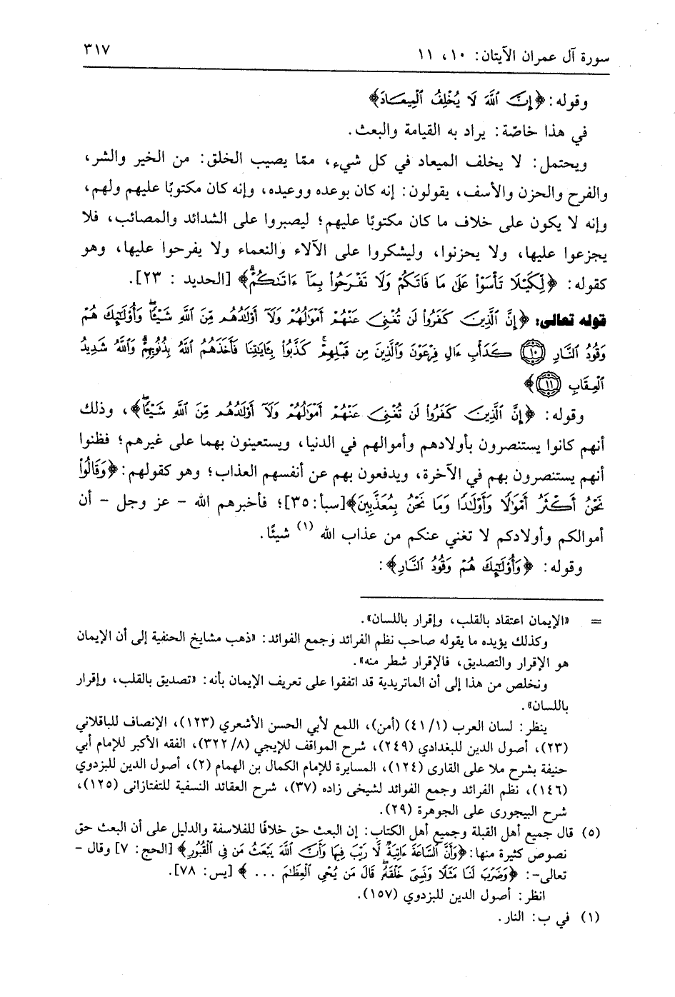 وقوله: (إِنَّ الَّذِينَ كَفَرُوا لَنْ تُغْنِيَ عَنْهُمْ أَمْوَالُهُمْ وَلَا أَوْلَادُهُمْ مِنَ اللَّهِ شَيْئًا)، وذلك أنهم كانوا يستنصرون بأولادهم وأموالهم في الدنيا، ويستعينون بهما على غيرهم؛ فظنوا أنهم يستنصرون بهم في الآخرة، ويدفعون بهم عن أنفسهم العذاب؛ وهو كقولهم: (وَقَالُوا نَحْنُ أَكْثَرُ أَمْوَالًا وَأَوْلَادًا وَمَا نَحْنُ بِمُعَذَّبِينَ)؛ فأخبرهم اللَّه - عَزَّ وَجَلَّ - أن أموالكم وأولادكم لا تغني عنكم من عذاب اللَّه شيئًا.