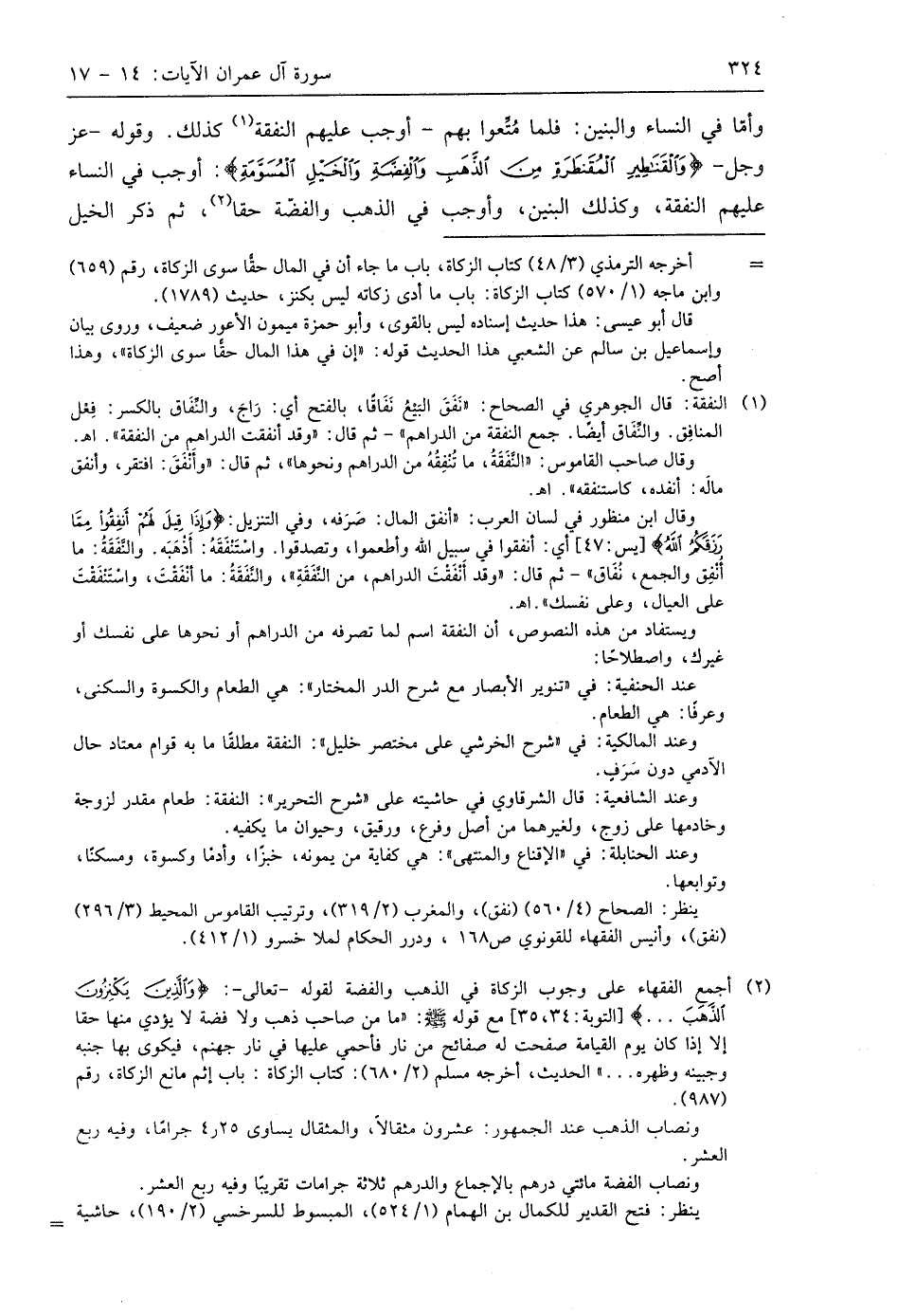 وأمَّا في النساء والبنين: فلما مُتِّعوا بهم - أوجب عليهم النفقة كذلك. وقوله - عز وجل - (وَالْقَنَاطِيرِ الْمُقَنْطَرَةِ مِنَ الذَّهَبِ وَالْفِضَّةِ وَالْخَيْلِ الْمُسَوَّمَةِ): أوجب في النساء عليهم النفقة، وكذلك البنين، وأوجب في الذهب والفضة حقا، ثم ذكر الخيل