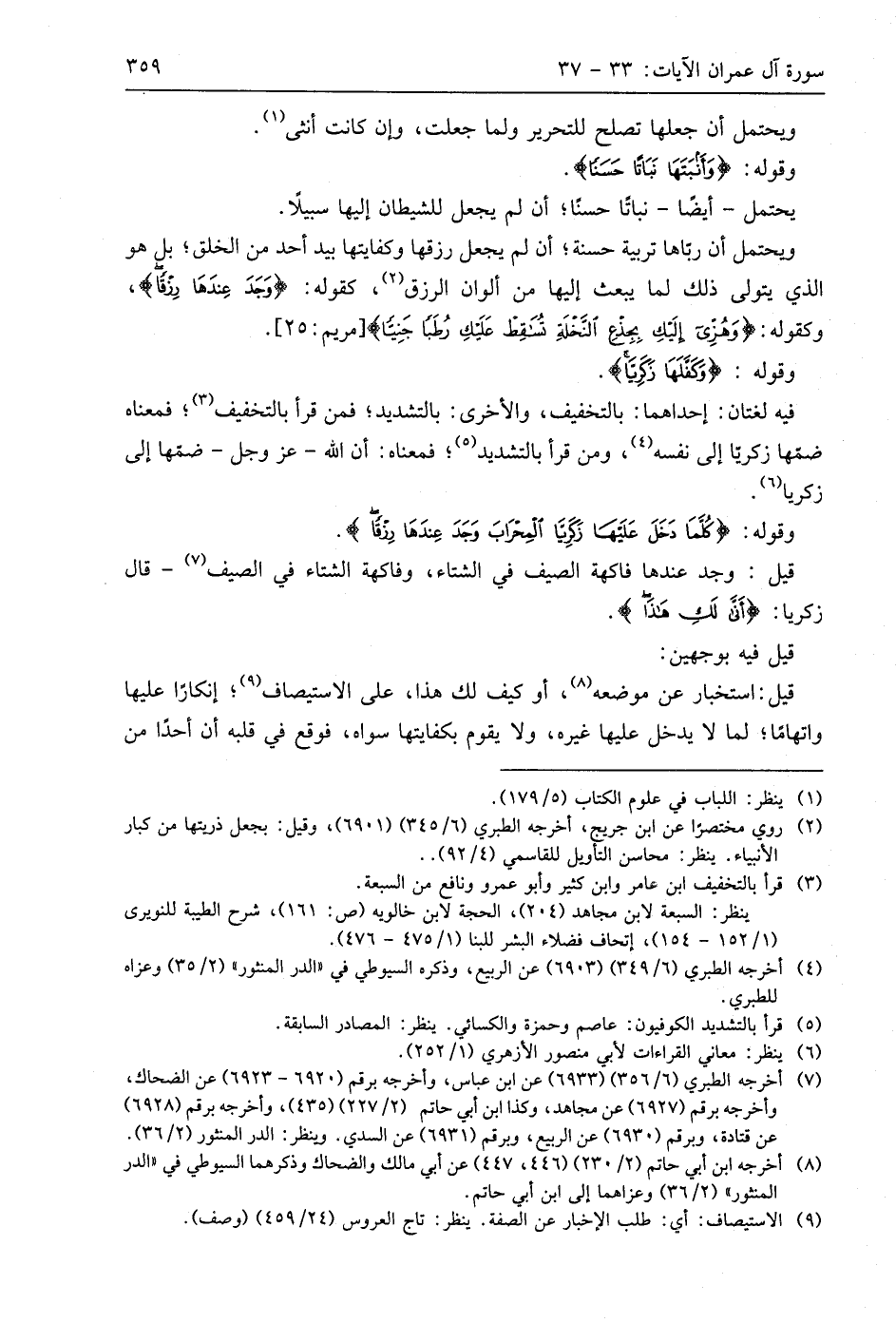 وقوله: (وَكَفَّلَهَا زَكَرِيَّا).