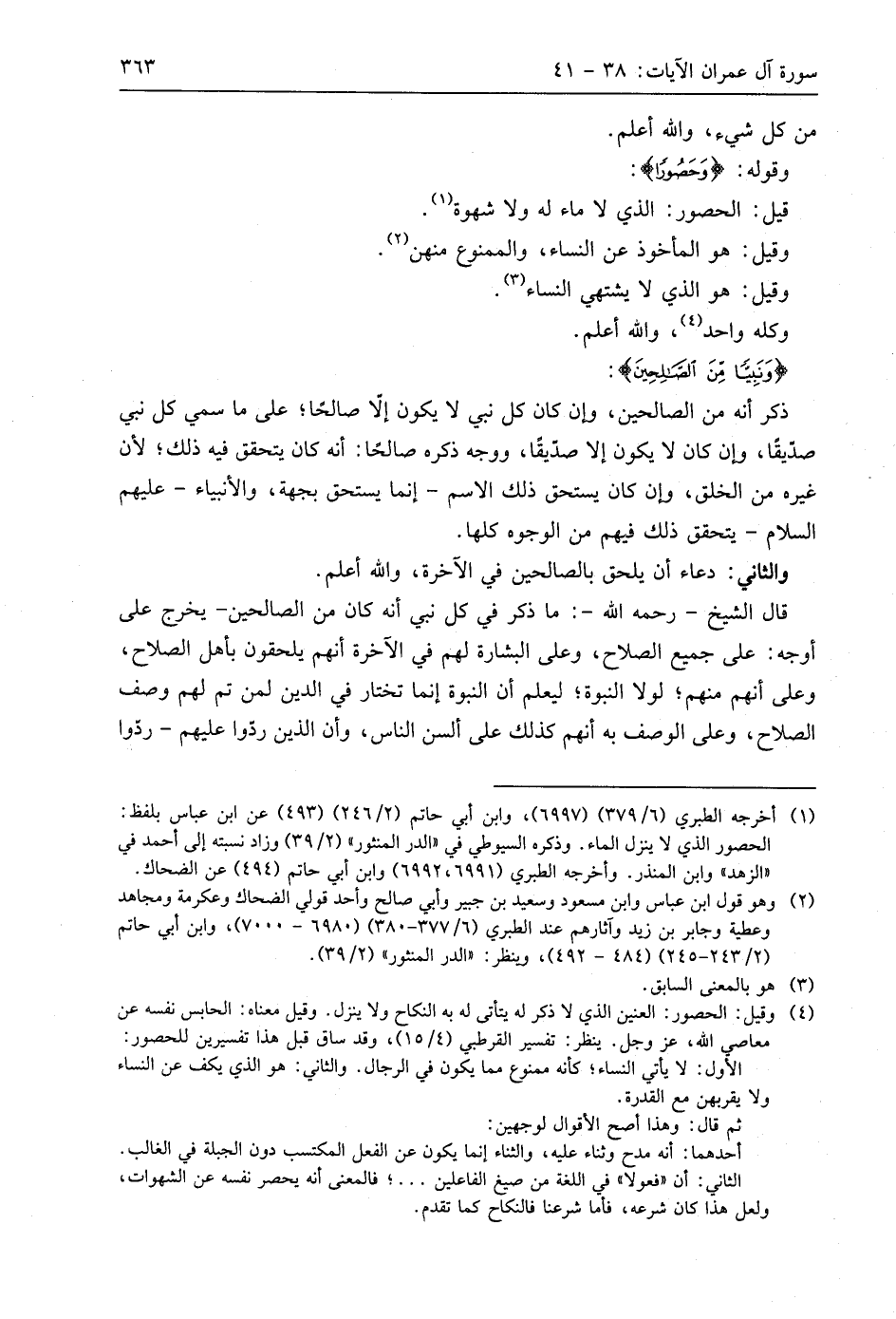قال الشيخ - رحمه اللَّه -: ما ذكر في كل نبي أنه كان من الصالحين - يخرج على أوجه: على جميع الصلاح، وعلى البشارة لهم في الآخرة أنهم يلحقون بأهل الصلاح، وعلى أنهم منهم؛ لولا النبوة؛ ليعلم أن النبوة إنما تختار في الدِّين لمن تم لهم وصف الصلاح، وعلى الوصف به أنهم كذلك على ألسن الناس، وأن الذين ردوا عليهم - ردّوا