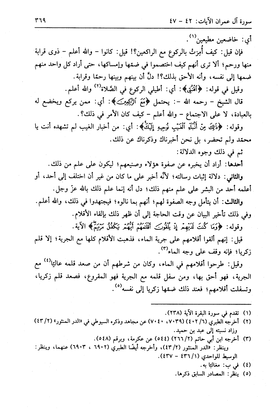 وقوله: (وَمَا كُنْتَ لَدَيْهِمْ إِذْ يُلْقُونَ أَقْلَامَهُمْ أَيُّهُمْ يَكْفُلُ مَرْيَمَ) الآية.