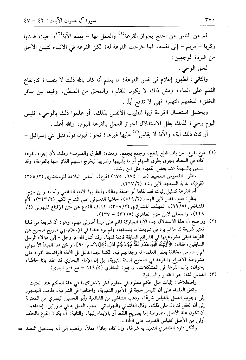 ثم من الناس من احتج بجواز القرعة والعمل بها - بهذه الآية؛ حيث ضمها زكريا -مريم- إلى نفسه، لما خرجت القرعة له؛ لكن القرعة في الأنبياء لتبيين الأحق من غيره؛ لوجهين: