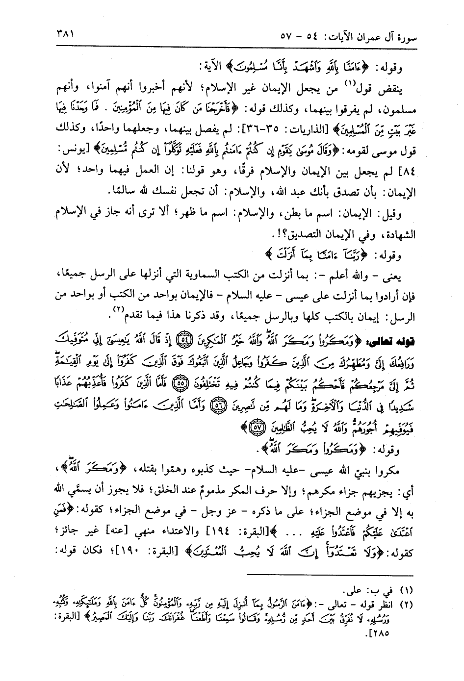قوله تعالى: (وَمَكَرُوا وَمَكَرَ اللَّهُ وَاللَّهُ خَيْرُ الْمَاكِرِينَ (54) إِذْ قَالَ اللَّهُ يَا عِيسَى إِنِّي مُتَوَفِّيكَ وَرَافِعُكَ إِلَيَّ وَمُطَهِّرُكَ مِنَ الَّذِينَ كَفَرُوا وَجَاعِلُ الَّذِينَ اتَّبَعُوكَ فَوْقَ الَّذِينَ كَفَرُوا إِلَى يَوْمِ الْقِيَامَةِ ثُمَّ إِلَيَّ مَرْجِعُكُمْ فَأَحْكُمُ بَيْنَكُمْ فِيمَا كُنْتُمْ فِيهِ تَخْتَلِفُونَ (55) فَأَمَّا الَّذِينَ كَفَرُوا فَأُعَذِّبُهُمْ عَذَابًا شَدِيدًا فِي الدُّنْيَا وَالْآخِرَةِ وَمَا لَهُمْ مِنْ نَاصِرِينَ (56) وَأَمَّا الَّذِينَ آمَنُوا وَعَمِلُوا الصَّالِحَاتِ فَيُوَفِّيهِمْ أُجُورَهُمْ وَاللَّهُ لَا يُحِبُّ الظَّالِمِينَ (57)